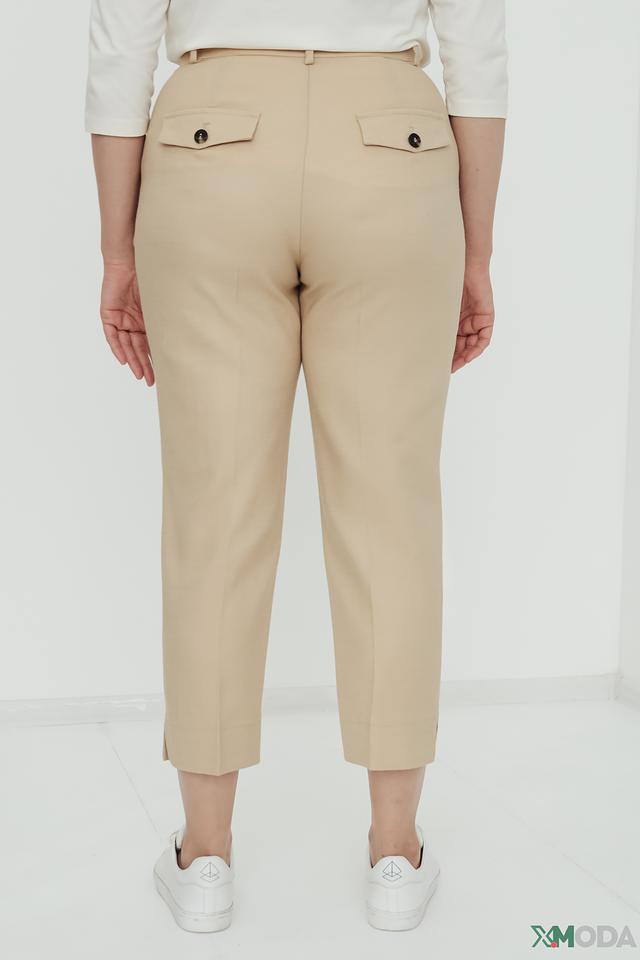 Модель имеет прямой крой, обеспечивающий комфортную посадку по фигуре. Застежка на молнию и пуговицу гарантирует надежную фиксацию. Брюки оснащены боковыми и задними карманами, что делает их практичными в использовании.