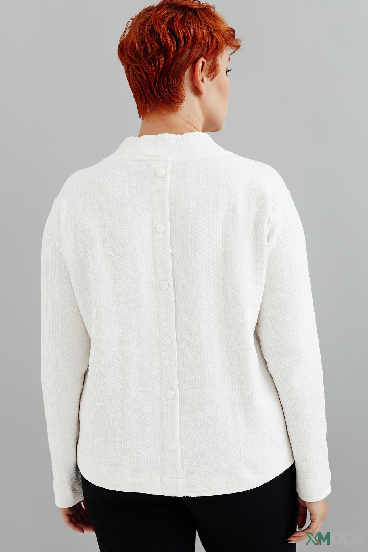- Дизайн: Классический белый пуловер с высоким воротником-стойкой и длинными рукавами. Универсальный крой прекрасно сочетается с различными элементами гардероба.
