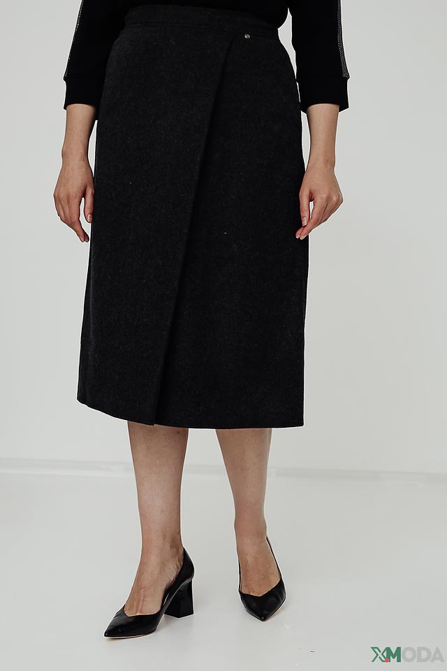Юбка имеет длину миди и асимметричный крой, который визуально стройнит фигуру. Декоративная складка на талии добавляет изысканности и подчеркивает талию. Ткань юбки представляет собой смесь полиэстера, полиакрила, шерсти и других волокон, что обеспечивает комфорт в носке и практичность в уходе.