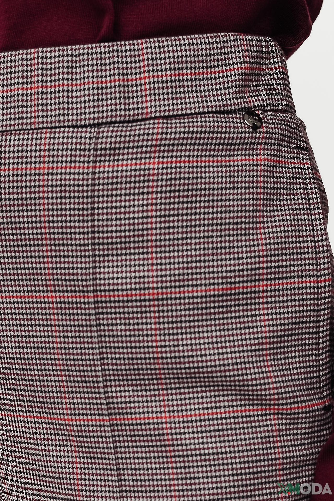 - Дизайн: Классический принт в клетку с акцентами красного цвета придает брюкам утонченный вид. Зауженный крой и аккуратные стрелки визуально удлиняют ноги и создают элегантный силуэт.