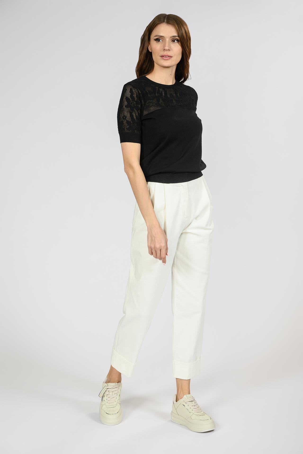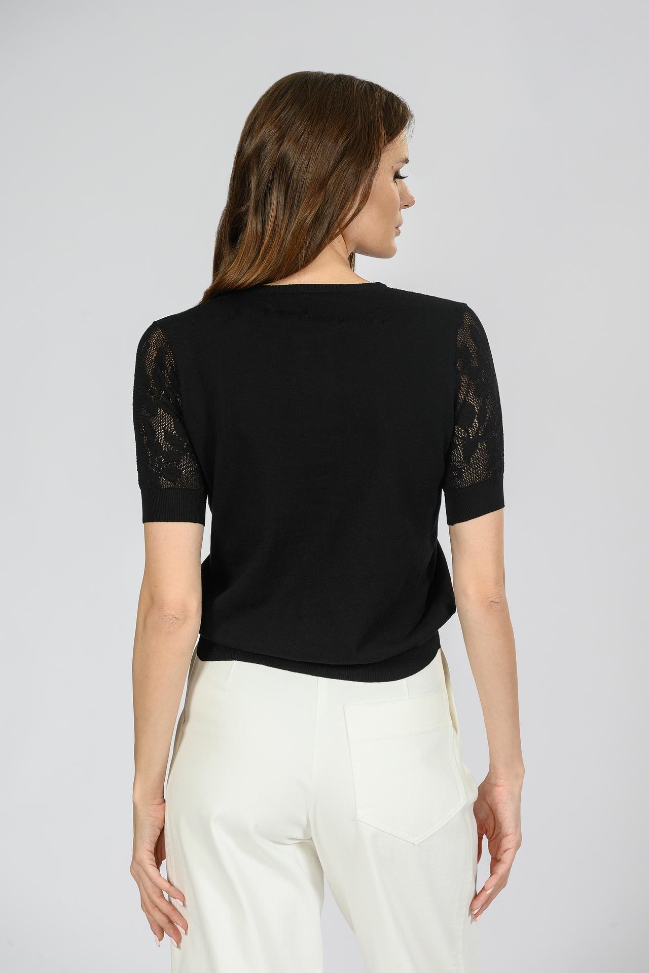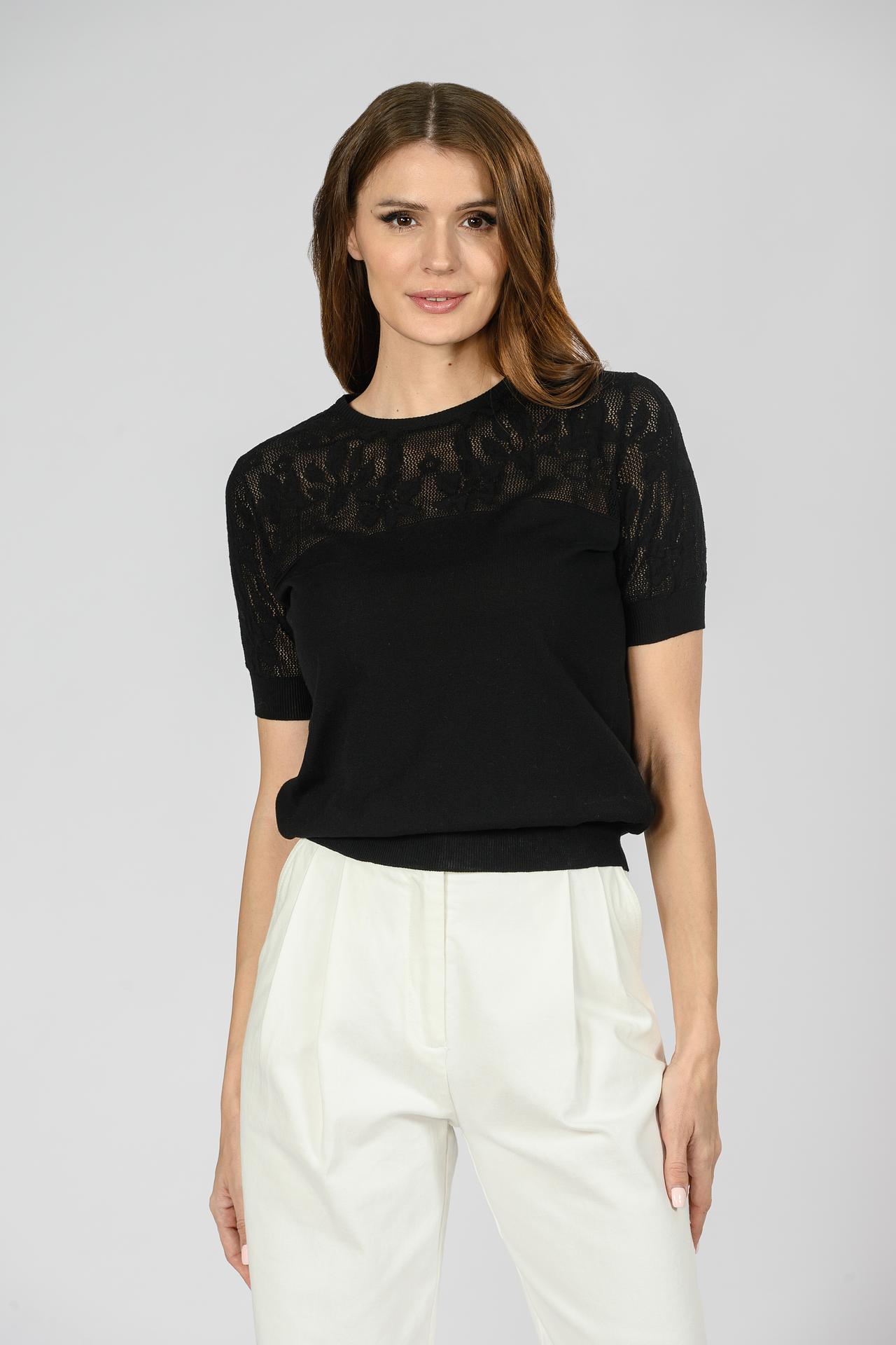 Элегантный джемпер Giorgio Grati из 100% хлопка — идеальный выбор для создания утонченных образов. Модель черного цвета с короткими рукавами и изысканным кружевным узором на плечах и верхней части спины придает образу особую женственность и шарм. Этот джемпер станет базовой вещью в вашем гардеробе, легко сочетаясь с различными стилями.