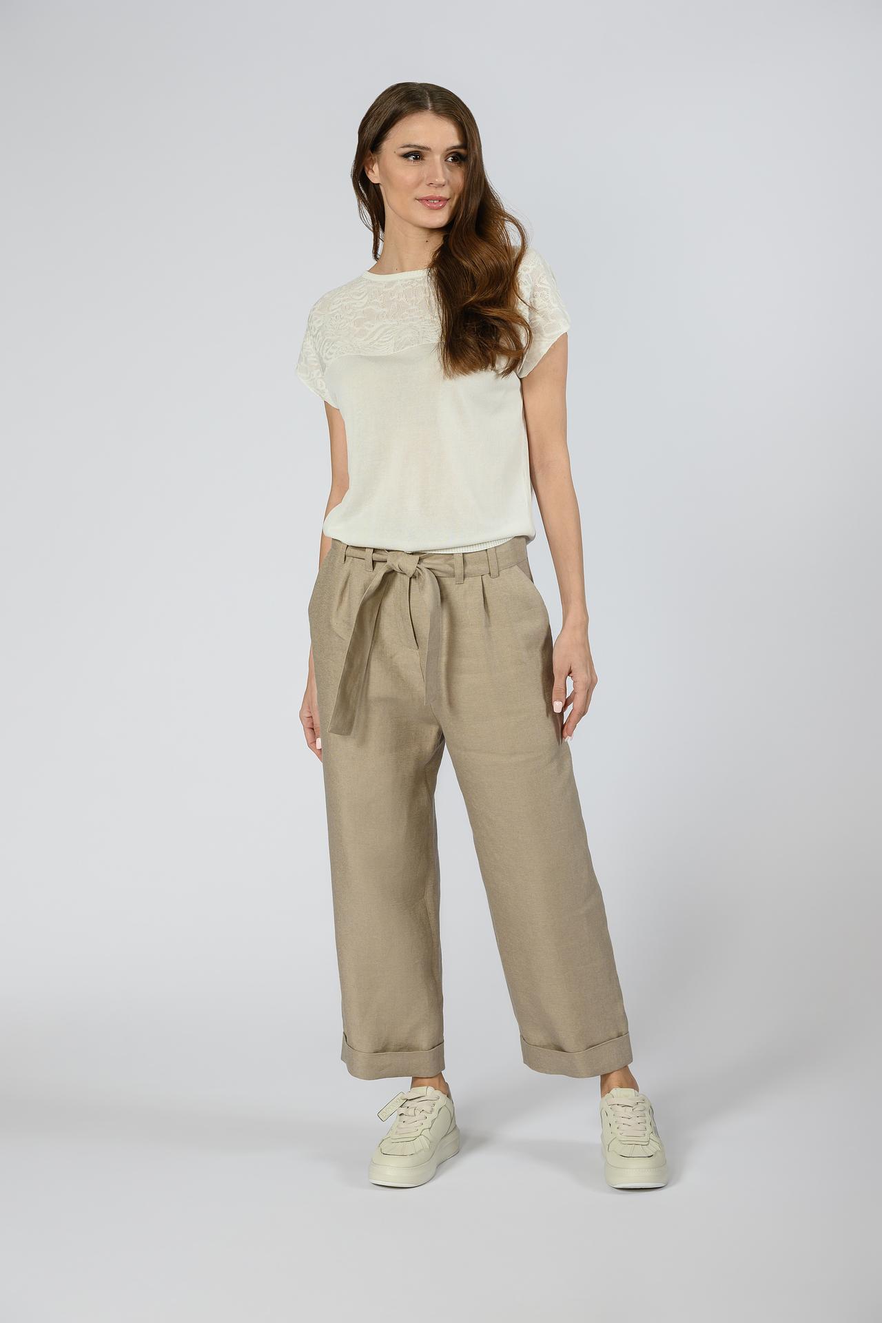 - Натуральный лен: Брюки выполнены из 100% льна, что обеспечивает отличную воздухопроницаемость и комфорт в жаркую погоду.