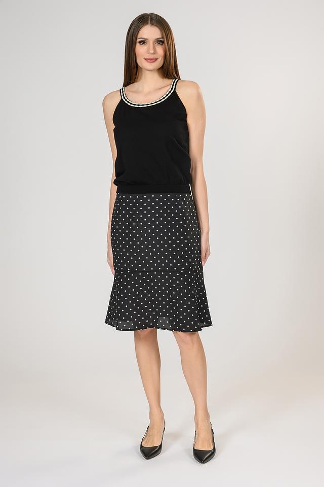 Эта юбка от Giorgio Grati станет отличным дополнением к вашему гардеробу. Модель выполнена в классическом чёрном цвете с контрастным белым горошком, что придает ей игривый и женственный вид.