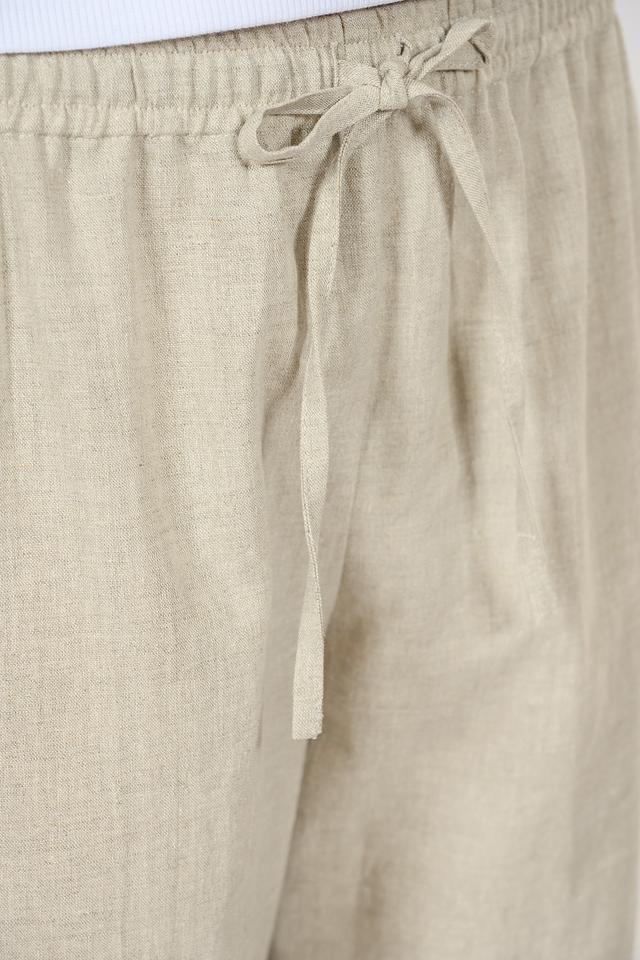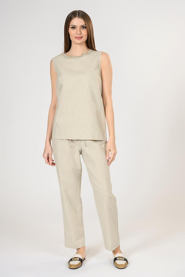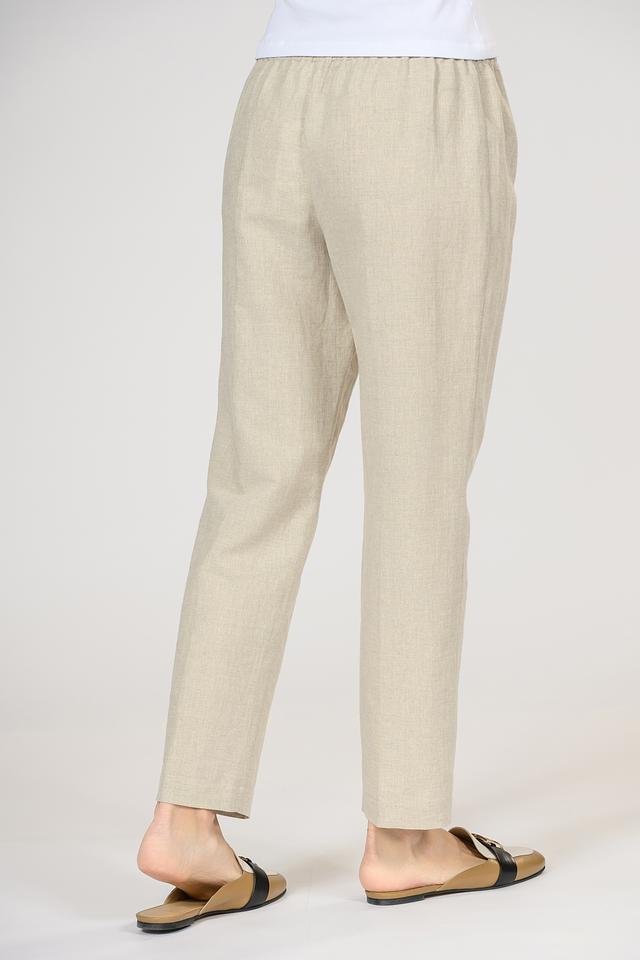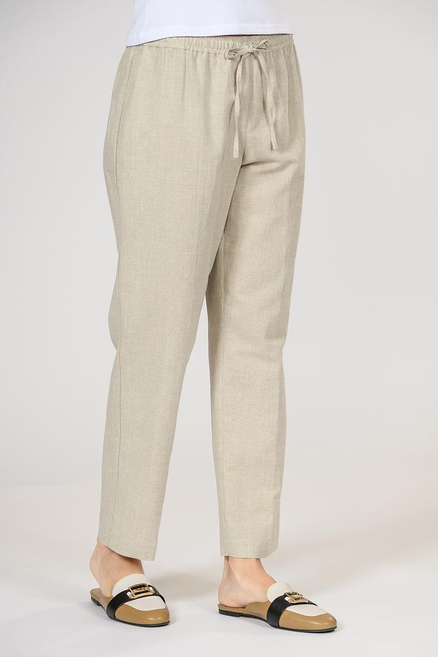 Брюки имеют прямой крой, который подходит для любой фигуры. Эластичный пояс с кулиской обеспечивает комфортную посадку и позволяет регулировать обхват талии. Нейтральный бежевый цвет легко сочетается с различными элементами одежды, позволяя создавать разнообразные образы.