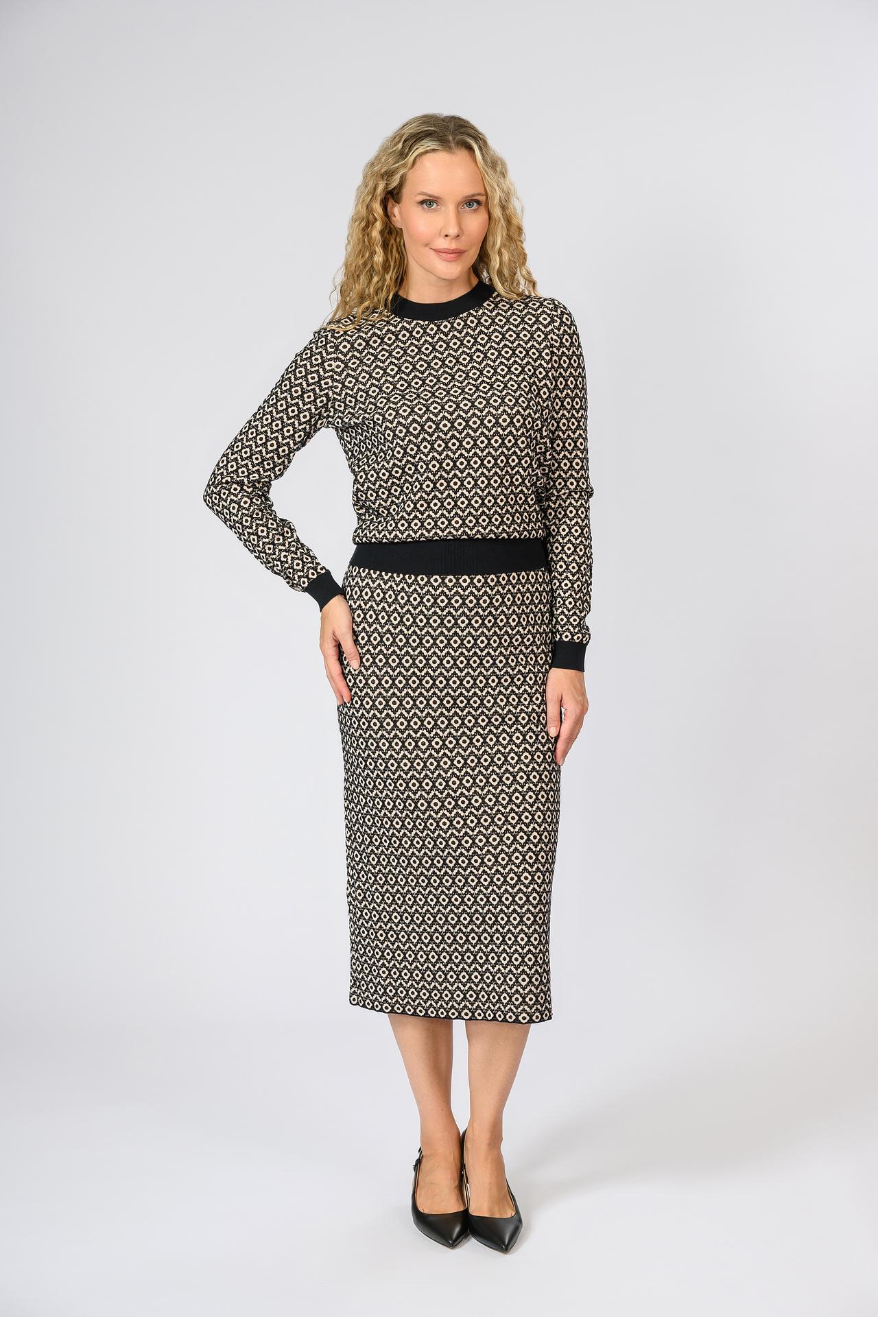 - Дизайн: Лаконичный крой и выразительный геометрический принт делают эту юбку стильным акцентом любого образа.