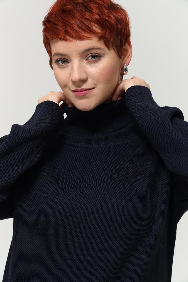 Водолазка имеет свободный крой, который не сковывает движения и позволяет создать комфортный образ. Высокий воротник-стойка защищает от холода и добавляет элегантности. Минималистичный дизайн делает эту водолазку универсальной — она легко сочетается с различными элементами одежды.