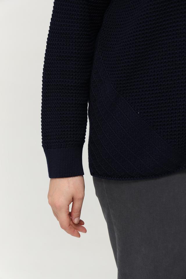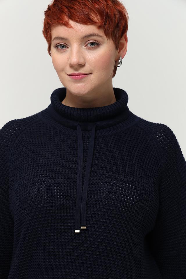 Тёмно-синий пуловер от Gollehaug с воротником-стойкой и декоративными шнурками. Изготовлен из мягкого сочетания хлопка и полиакрила, обеспечивающего комфорт и тепло. Состав: хлопок 50%, полиакрил 50%