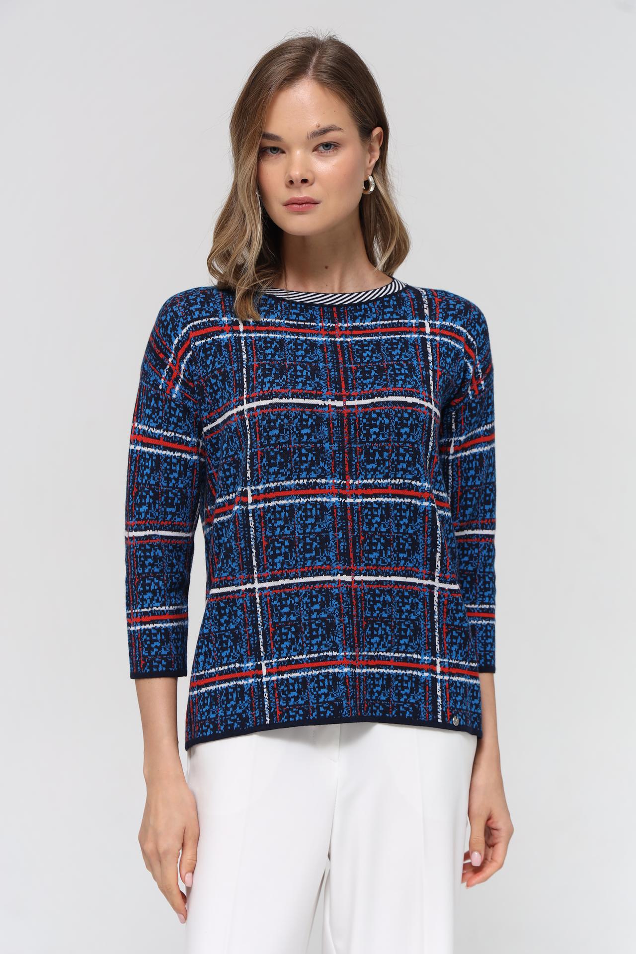 Пуловер Gollehaug синий в клетку с полосатым воротником