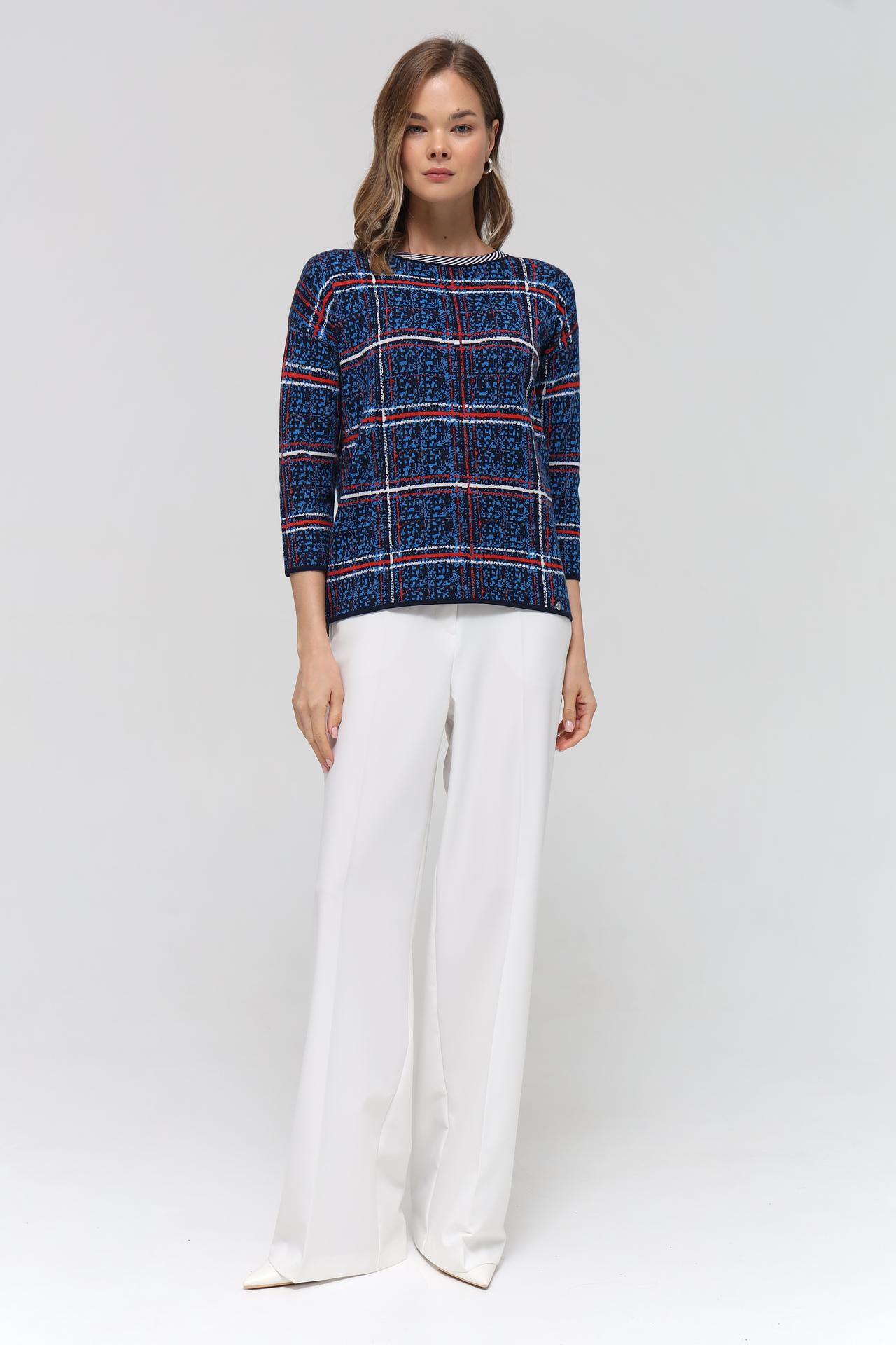Модный женский пуловер Gollehaug в актуальную клетку идеально дополнит ваш повседневный или офисный образ. Дизайн модели с выразительным принтом и аккуратным полосатым воротом подчеркивает элегантность, предлагая универсальное решение для различных сочетаний.
