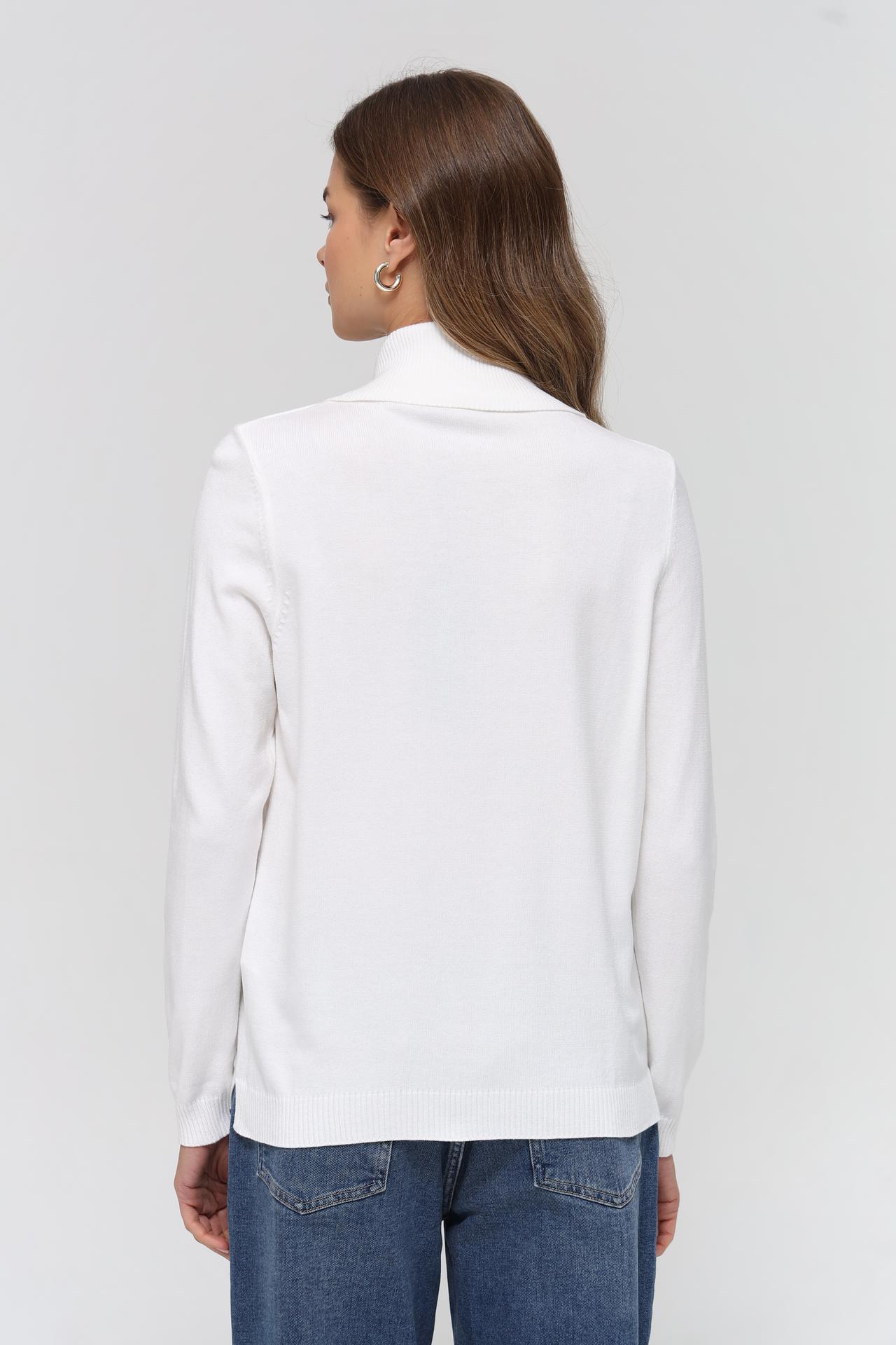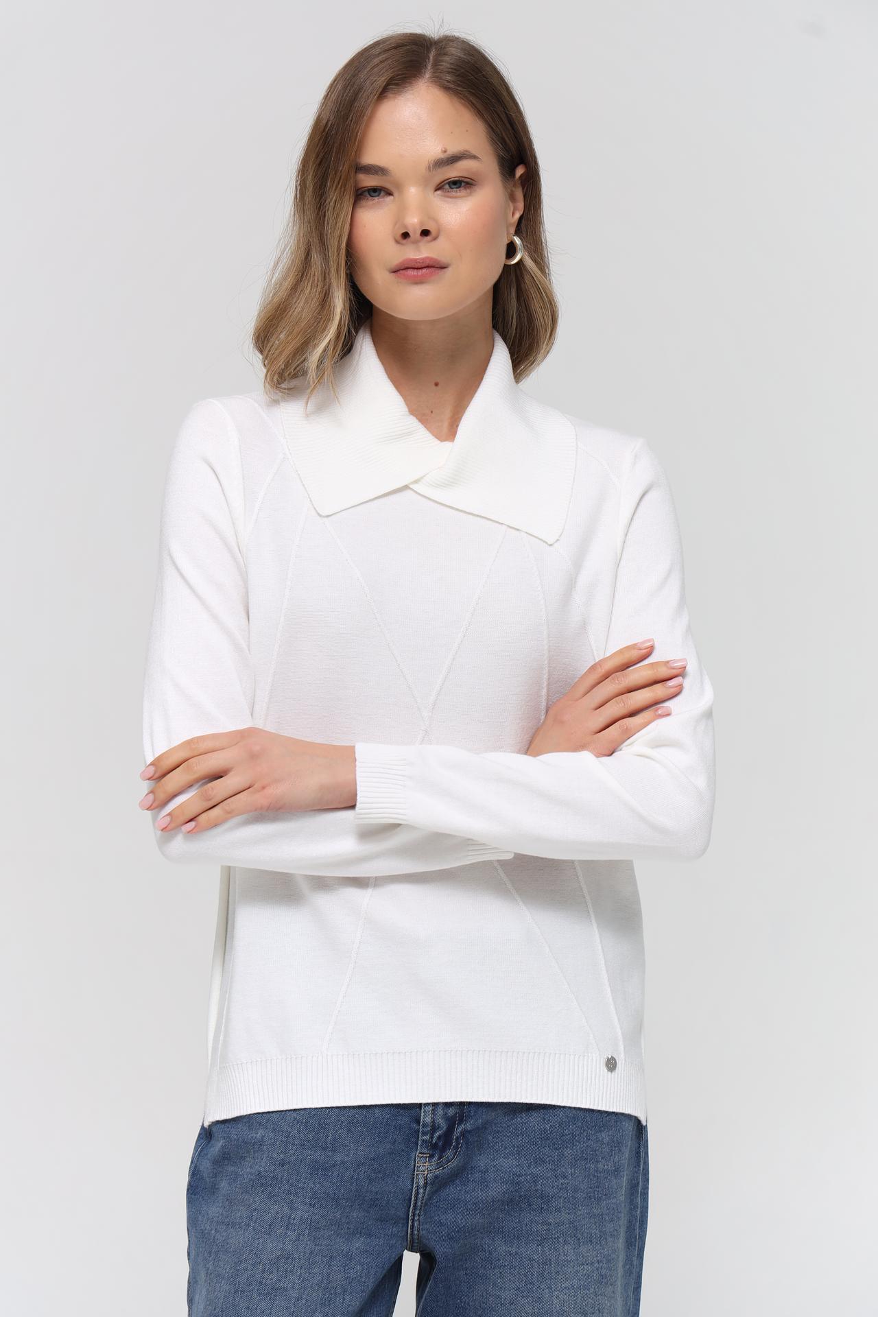 Пуловер обладает лаконичным дизайном, который подчеркнет вашу индивидуальность. Белый цвет визуально освежает образ и легко сочетается с различными элементами гардероба. Декоративные строчки добавляют изделию изысканности.