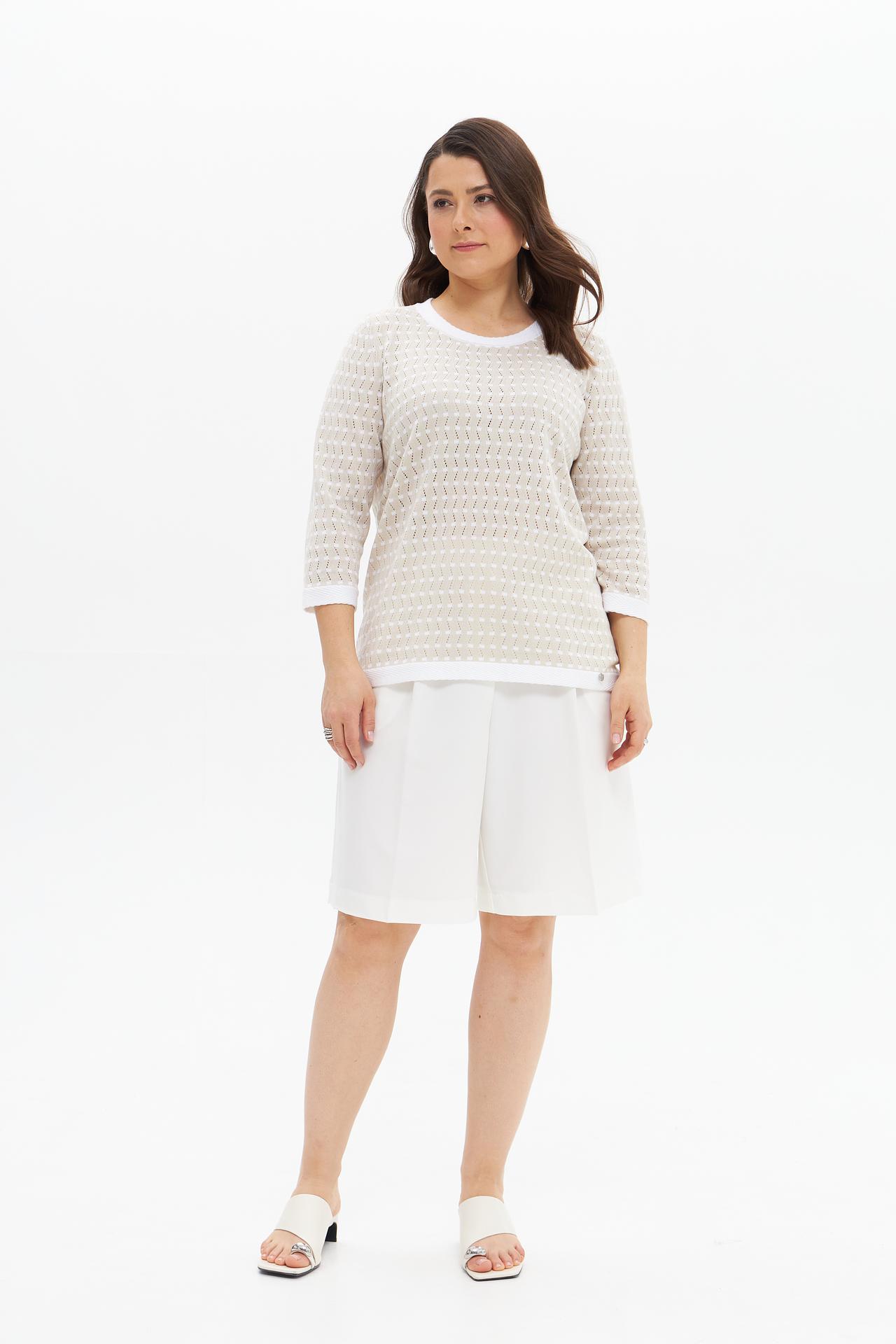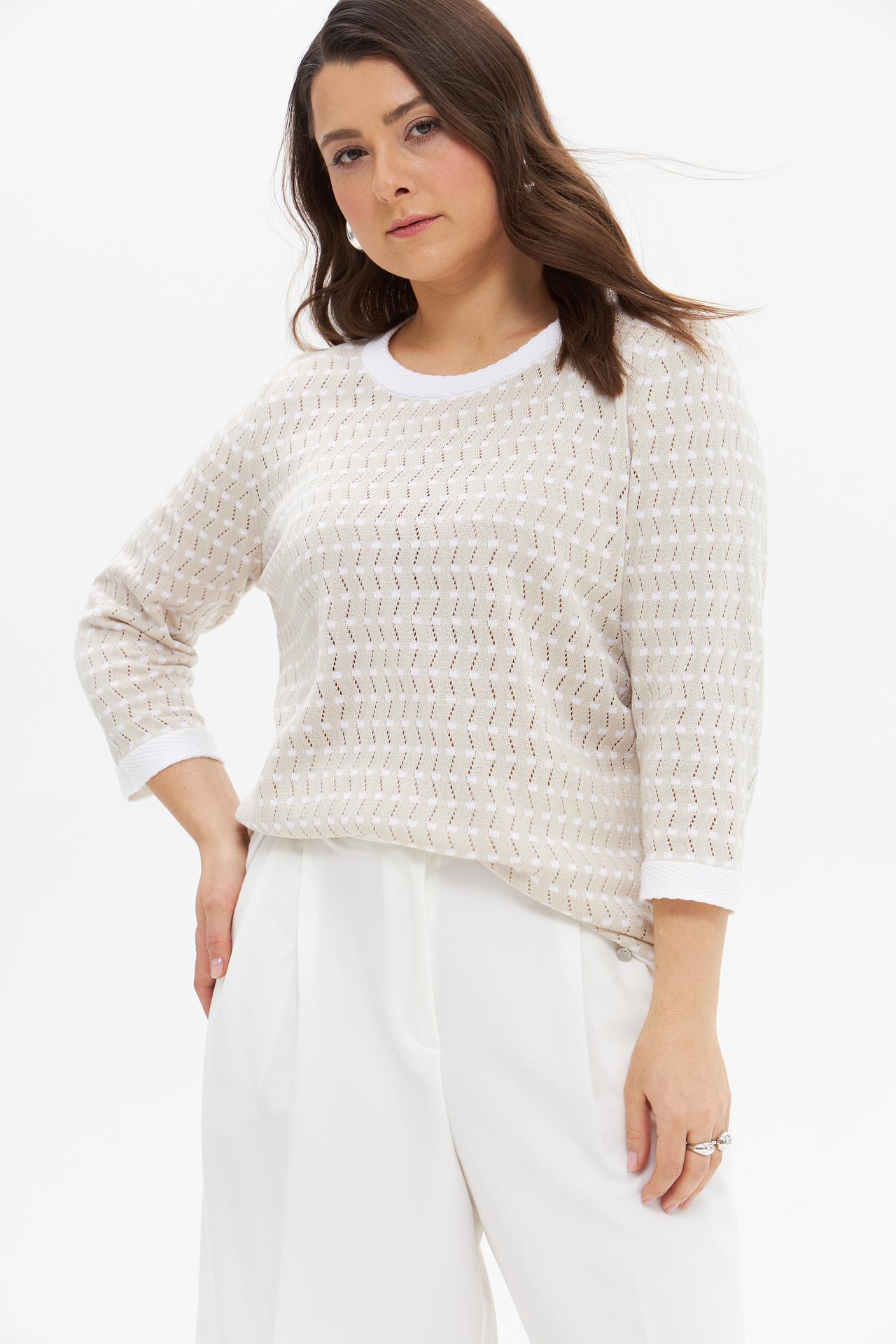 - Элегантный дизайн: Ажурный узор придает пуловеру женственность и изысканность.