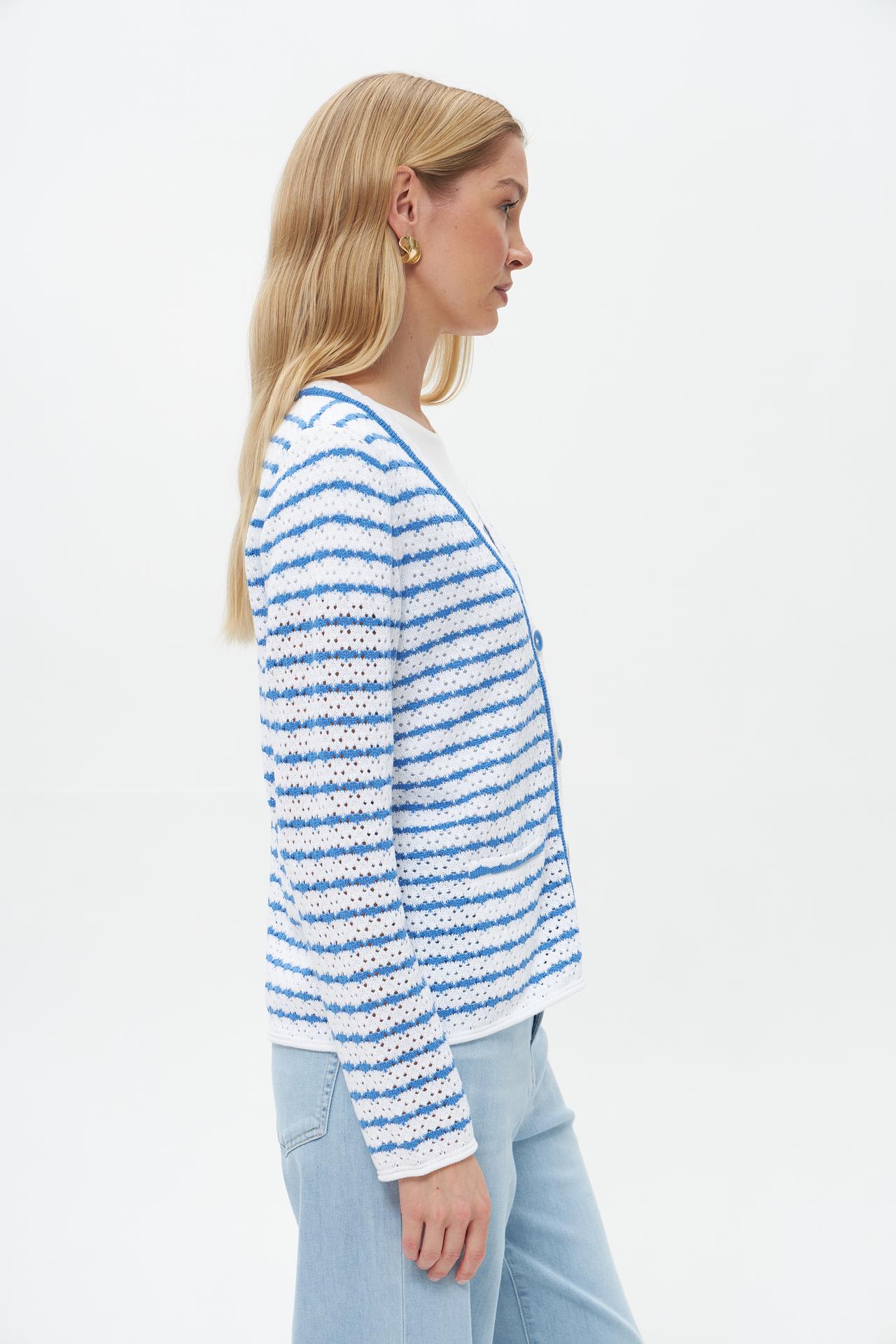 Жакет идеально подходит для создания как повседневных, так и более элегантных образов. Вязаный жакет в полоску – это тренд, который всегда в моде.