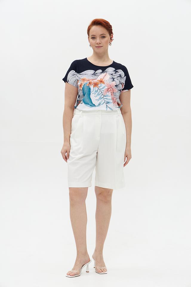 Круглый вырез горловины и короткие рукава делают силуэт легким и непринужденным. Эта футболка прекрасно сочетается с джинсами, шортами, юбками и брюками, позволяя создавать разнообразные образы.