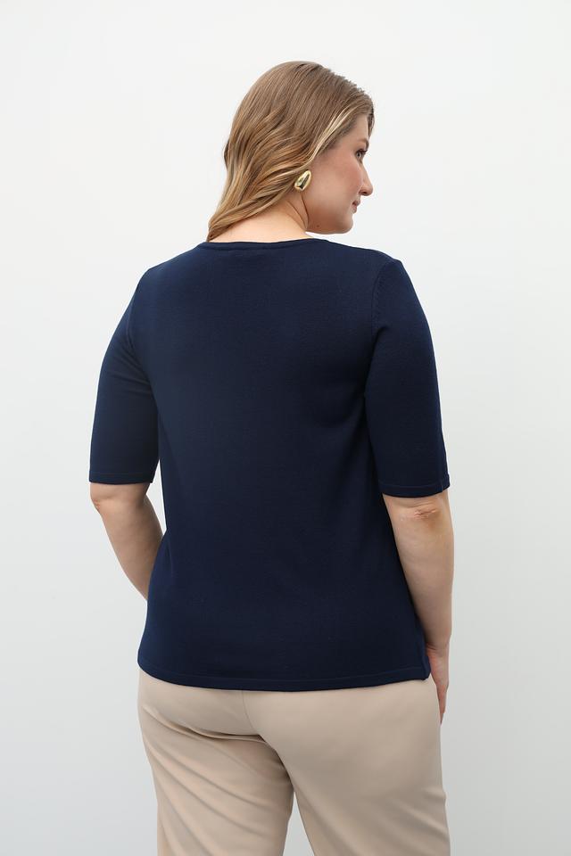 Текстурная вязка придает пуловеру изысканный вид, а насыщенный темно-синий цвет легко сочетается с другими элементами гардероба.