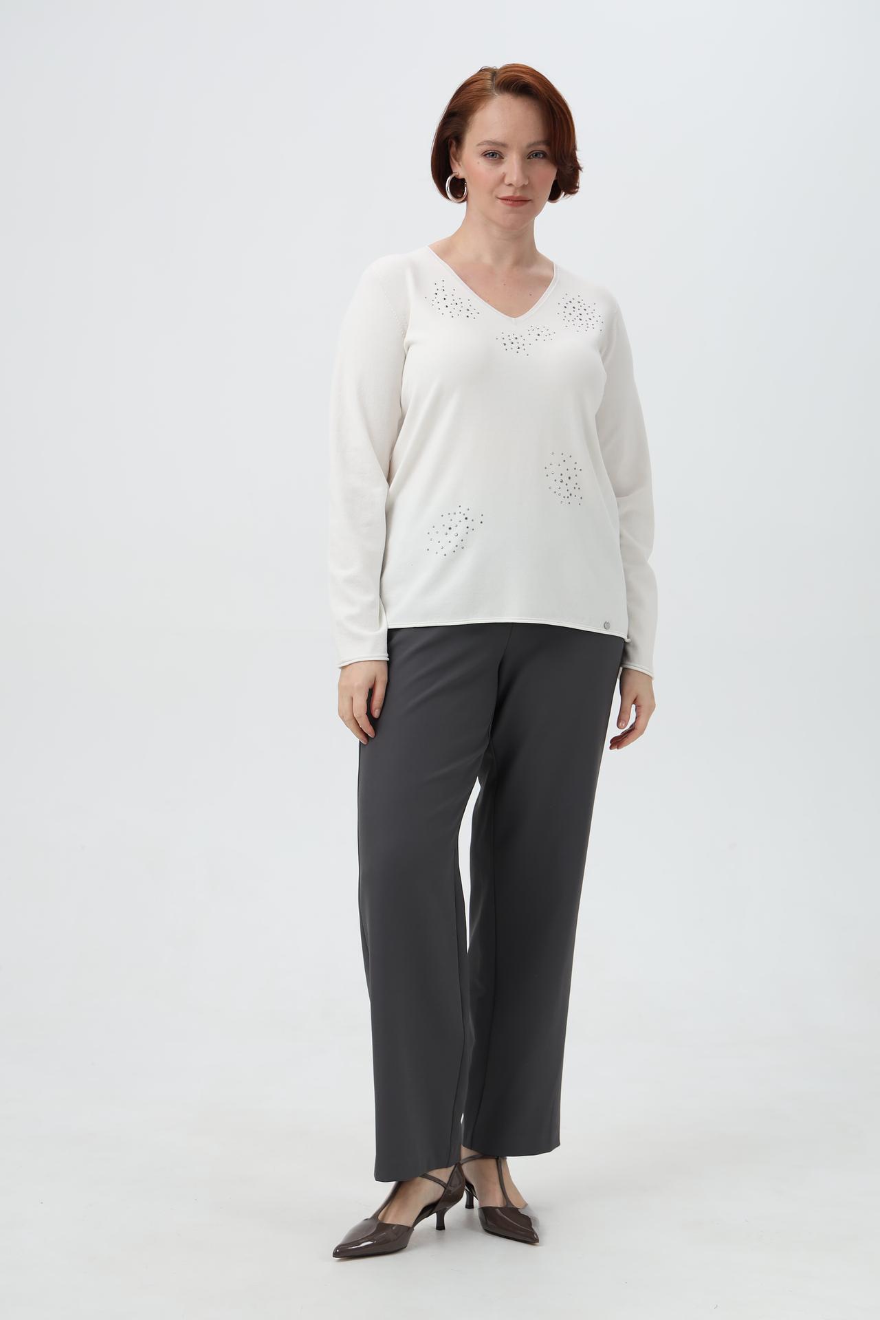 Состав ткани обеспечивает идеальный баланс между комфортом и практичностью: 18% полиамид, 28% полиэстер, 54% вискоза. Такое сочетание материалов гарантирует приятные тактильные ощущения, хорошую воздухопроницаемость и износостойкость изделия. Пуловер хорошо держит форму и сохраняет цвет даже после многочисленных стирок.
