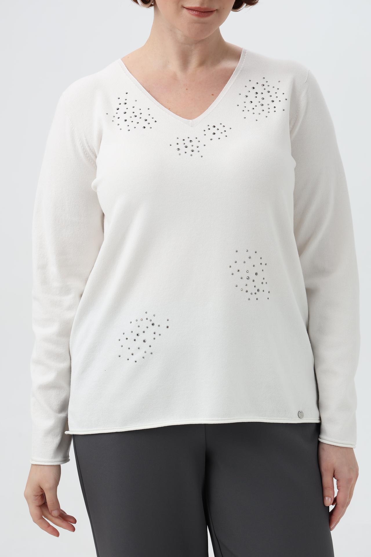 Элегантный пуловер от Gollehaug станет изысканным дополнением вашего гардероба. Модель выполнена в кремовом оттенке и украшена россыпью деликатных страз, создающих эффект мерцания. V-образный вырез горловины визуально удлиняет шею, а прямой крой обеспечивает комфортную посадку. Этот пуловер идеально подойдет как для повседневных образов, так и для более торжественных случаев, добавляя нотку шика.
