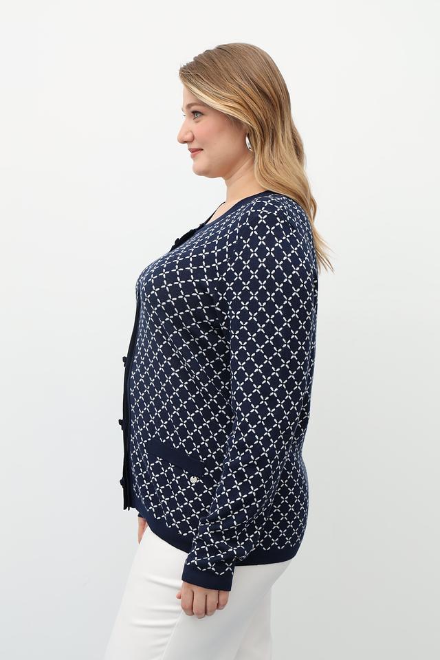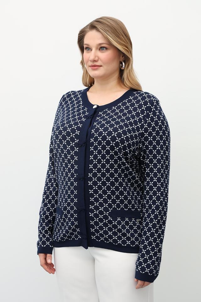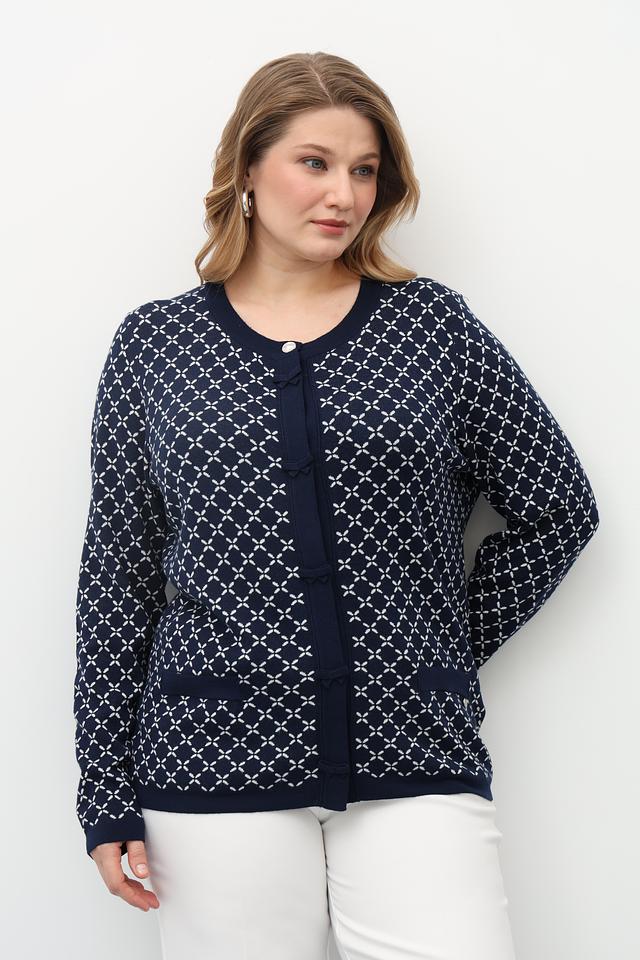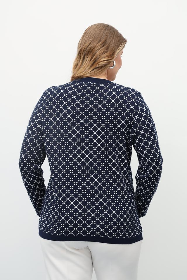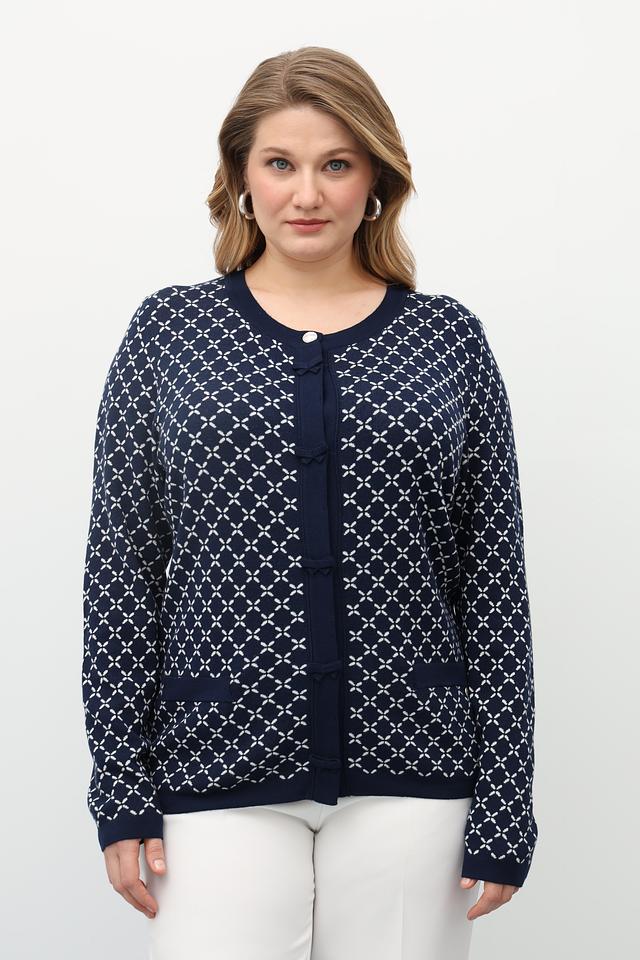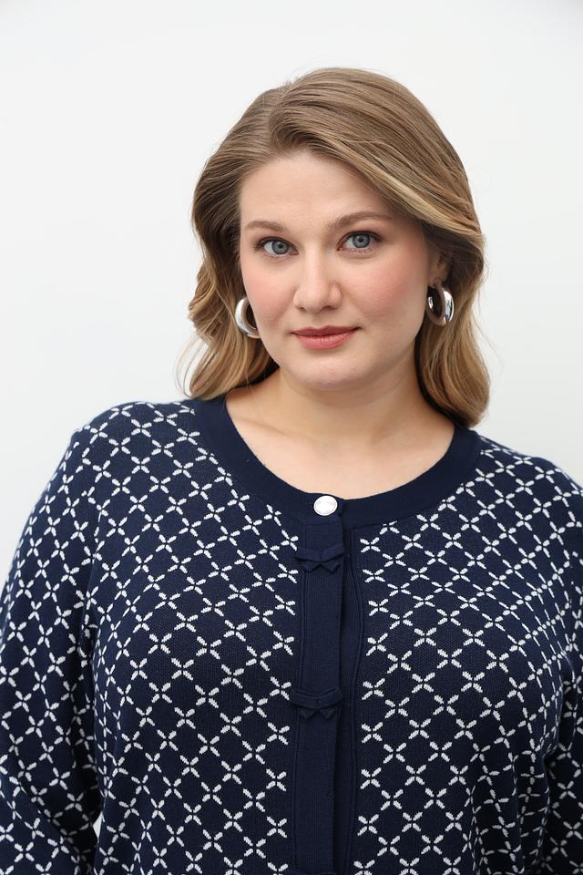 Синий жакет Gollehaug с оригинальным геометрическим узором. Изготовлен из мягкого трикотажа с добавлением модала для комфорта и приятных тактильных ощущений. Застежка на пуговицы. Состав: модал 45%, полиакрил 37%, полиамид 18%