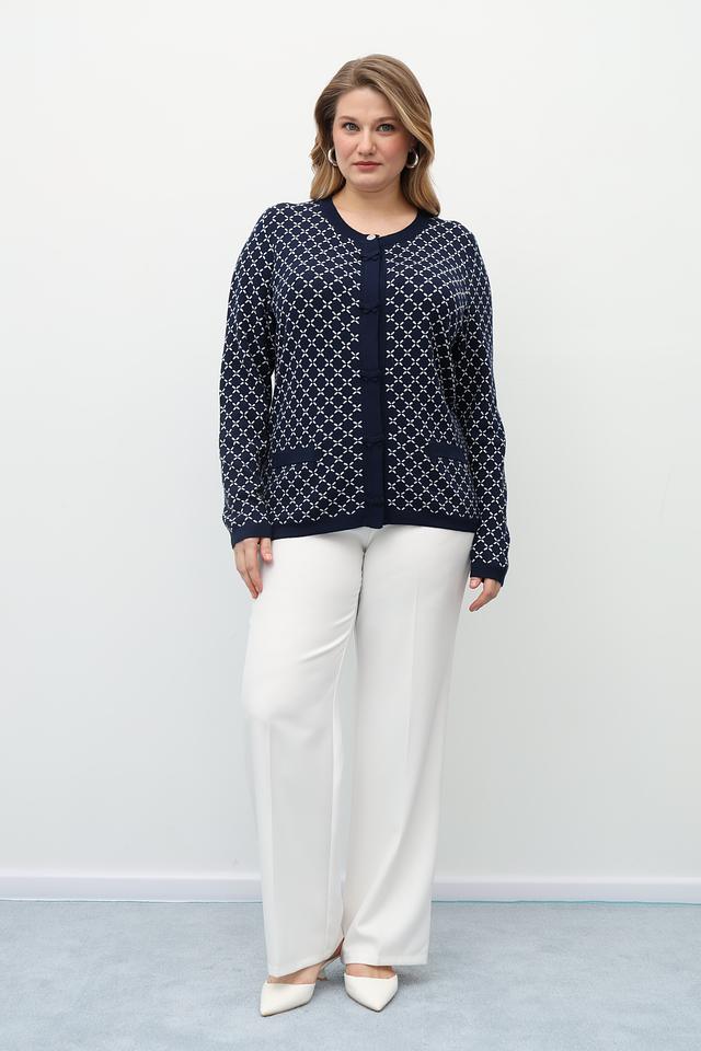 Женский жакет Gollehaug выполнен в насыщенном синем цвете и украшен выразительным геометрическим узором. Модель имеет классический крой с длинными рукавами и V-образным вырезом.