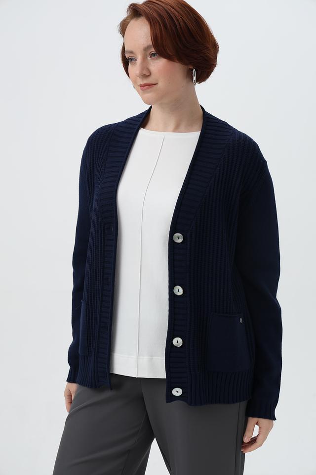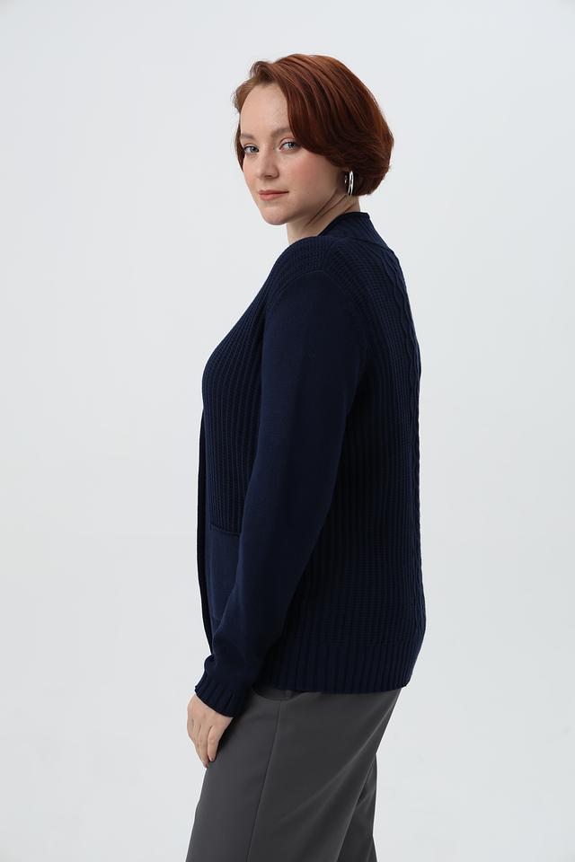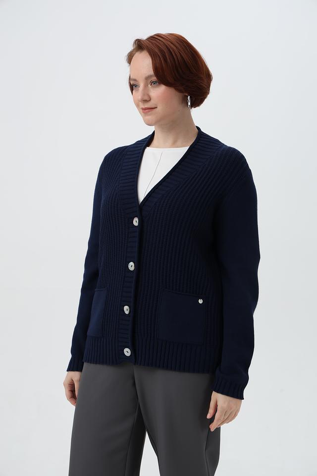 Представляем элегантный вязаный жакет от бренда Gollehaug. Эта модель выполнена в тёмно-синем цвете и станет прекрасным дополнением к вашему гардеробу.
