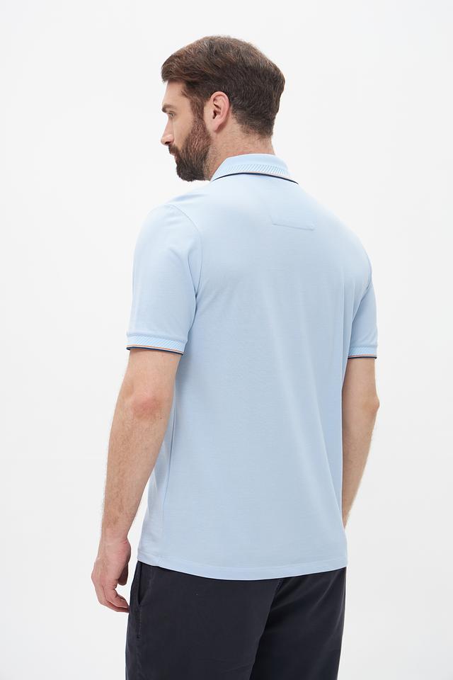 На груди расположена накладная планка с декоративной отделкой в тон окантовке воротника. Короткие рукава поло завершаются темной окантовкой. Эта модель станет отличным выбором для повседневной носки, а также для создания более формальных образов.