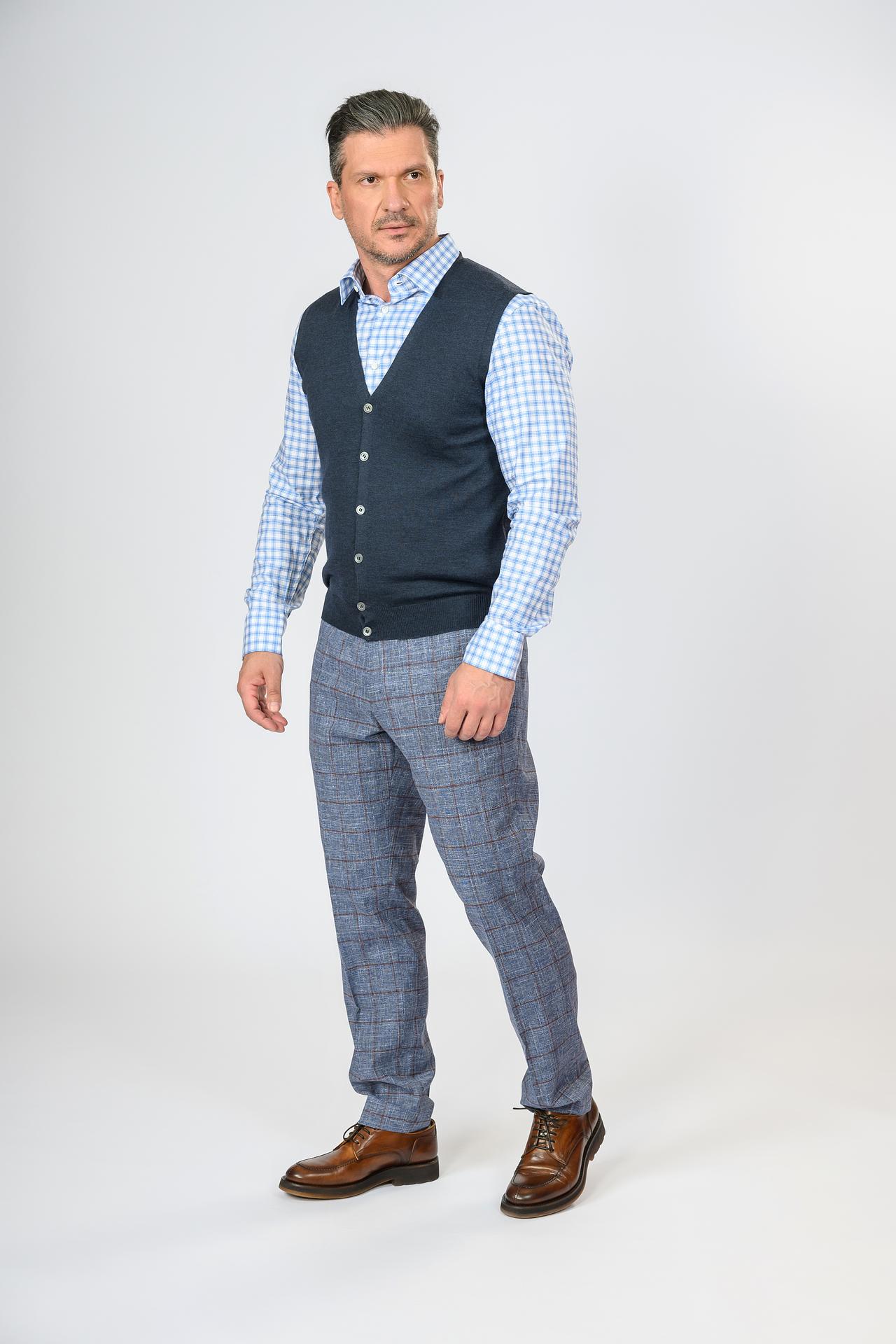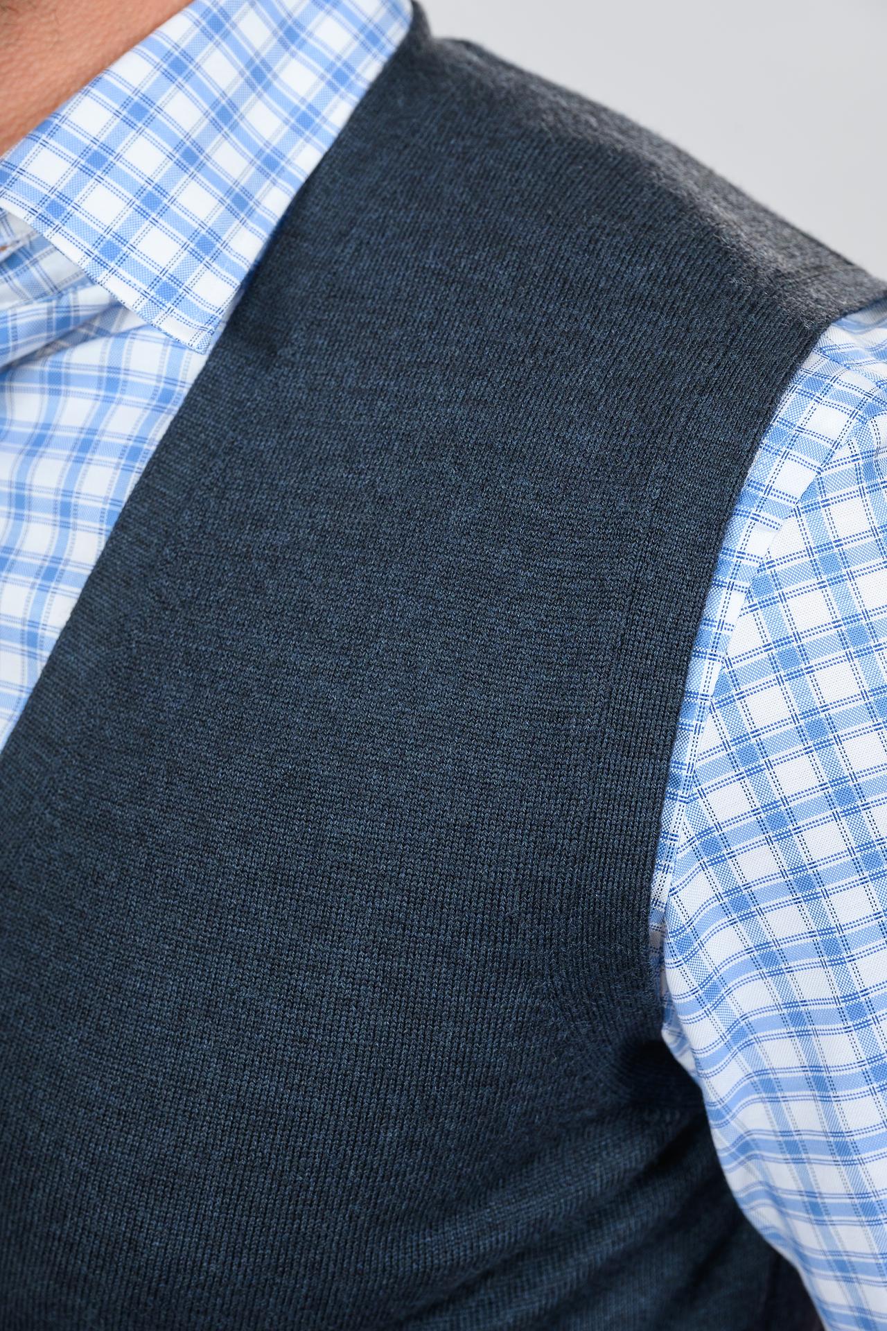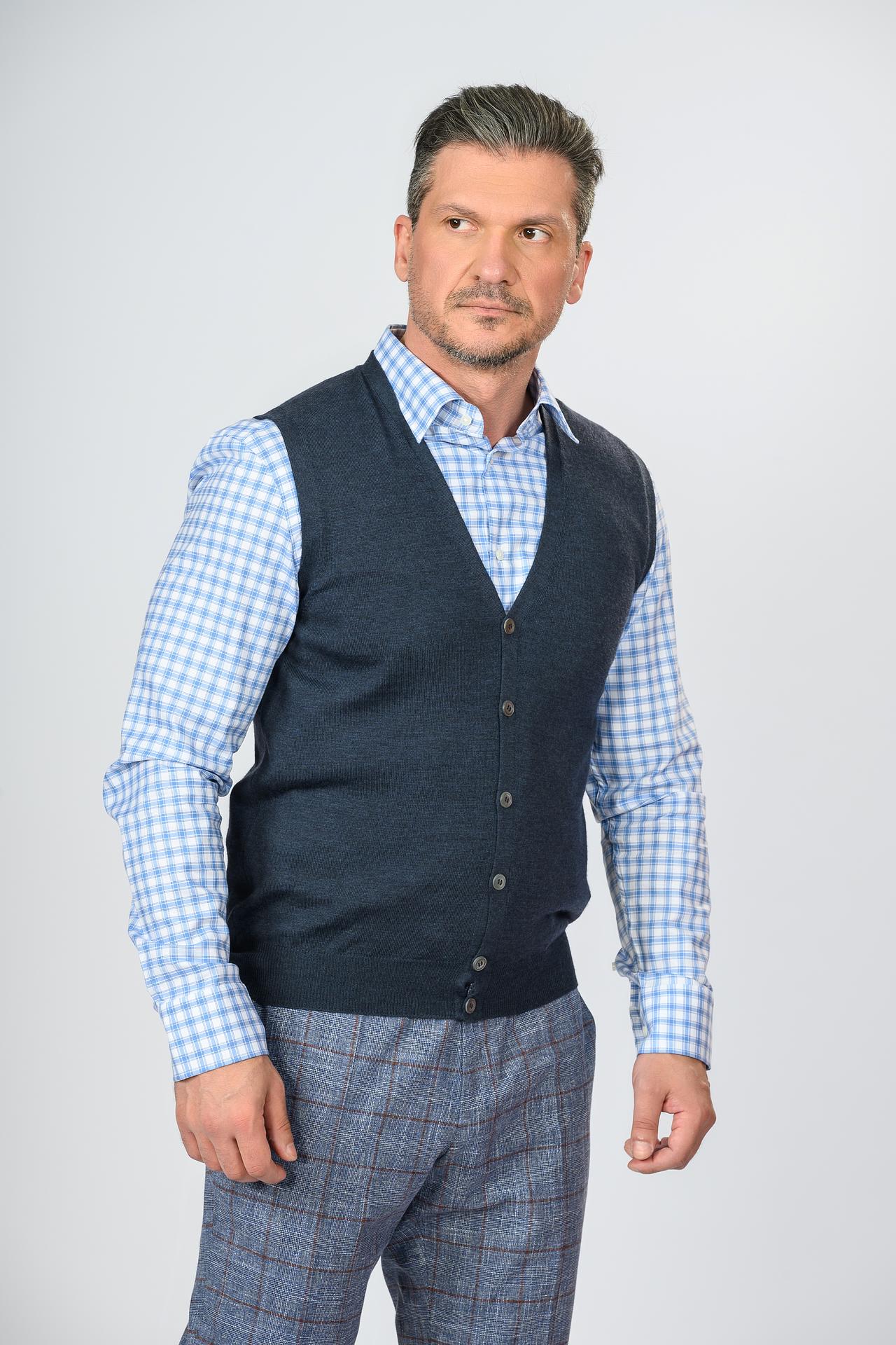 - Классический дизайн: V-образный вырез и застежка на пуговицы делают жилет подходящим для любого стиля.