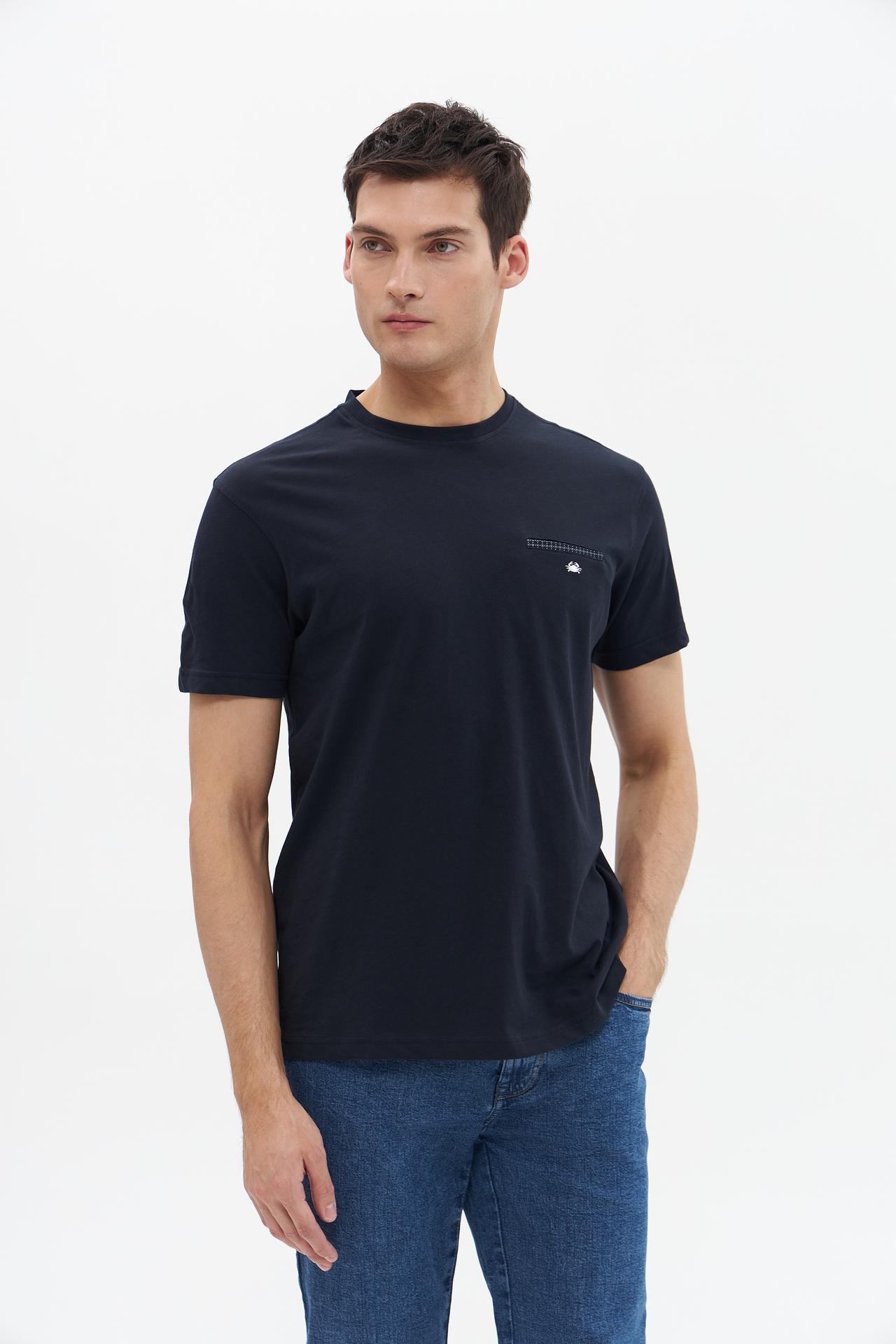 - Стильный дизайн. Декорирована небольшим карманом и вышивкой логотипа, что придает футболке оригинальность.