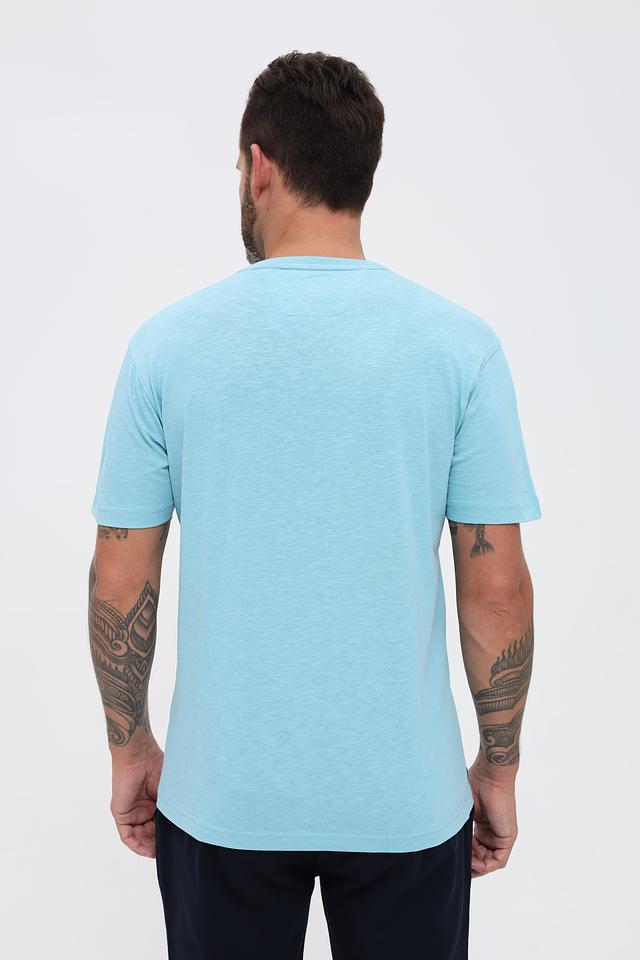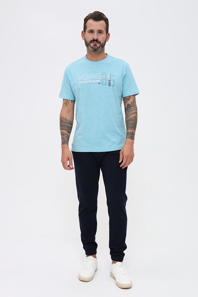 Голубая футболка Granchio с принтом Voyager – стильная и комфортная модель из 100% хлопка. Футболка имеет прямой крой и короткий рукав, идеально подходит для повседневной носки. Состав: хлопок 100%
