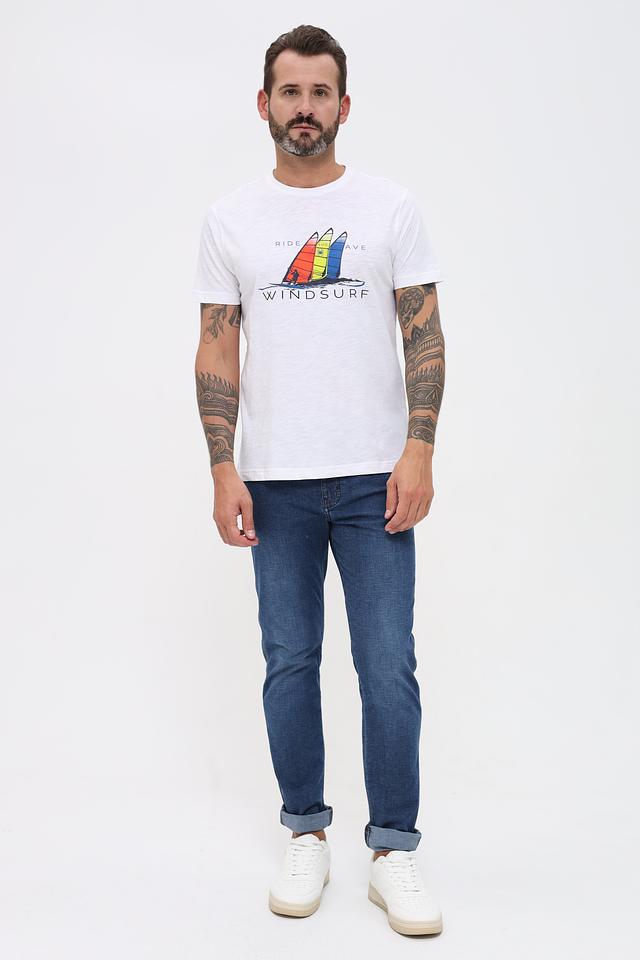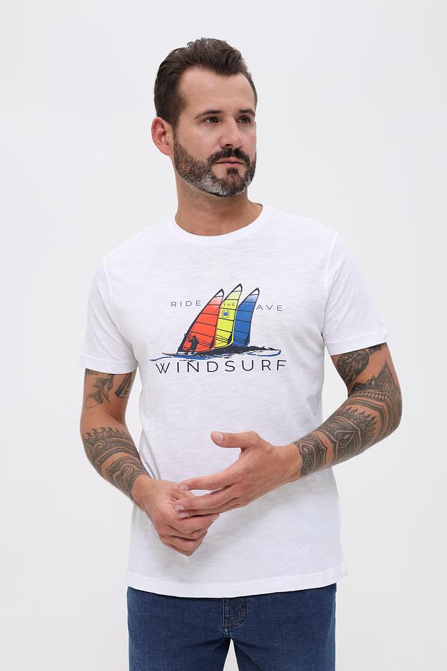Белая футболка Granchio с ярким принтом в виде виндсерфинга. Изготовлена из 100% хлопка, обеспечивающего комфорт и воздухопроницаемость. Отличный выбор для повседневного образа. Состав: хлопок 100%