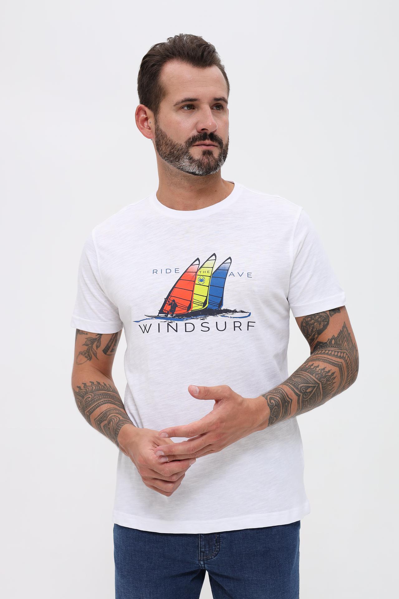 Стильная белая футболка Granchio с оригинальным принтом в виде виндсёрфинга – отличный выбор для тех, кто ценит комфорт и индивидуальность. Изготовленная из 100% хлопка, эта футболка обеспечивает мягкость и воздухопроницаемость, что делает её идеальной для повседневной носки.