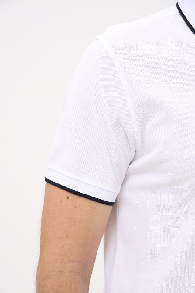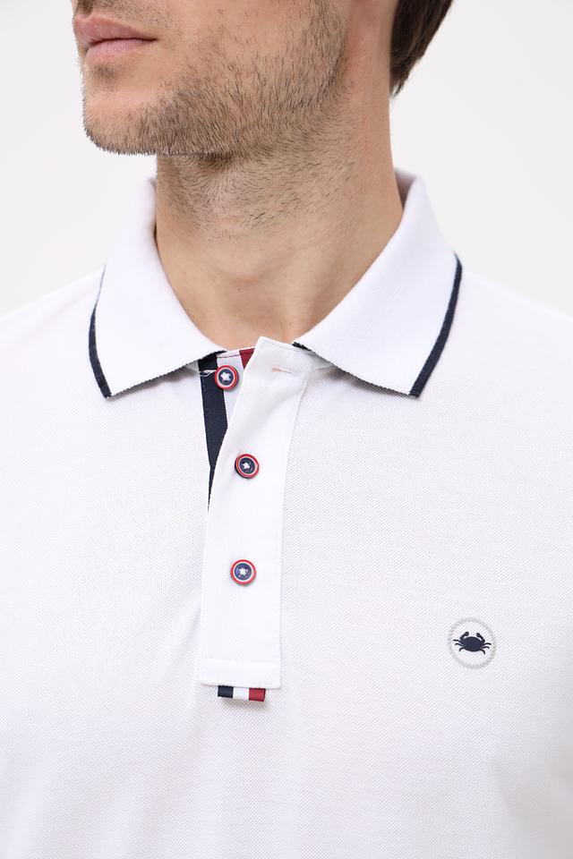Мужское поло от бренда Granchio выполнено в белом цвете с черной отделкой по воротнику и рукавам. Эта модель сочетает в себе классический стиль и современный дизайн.