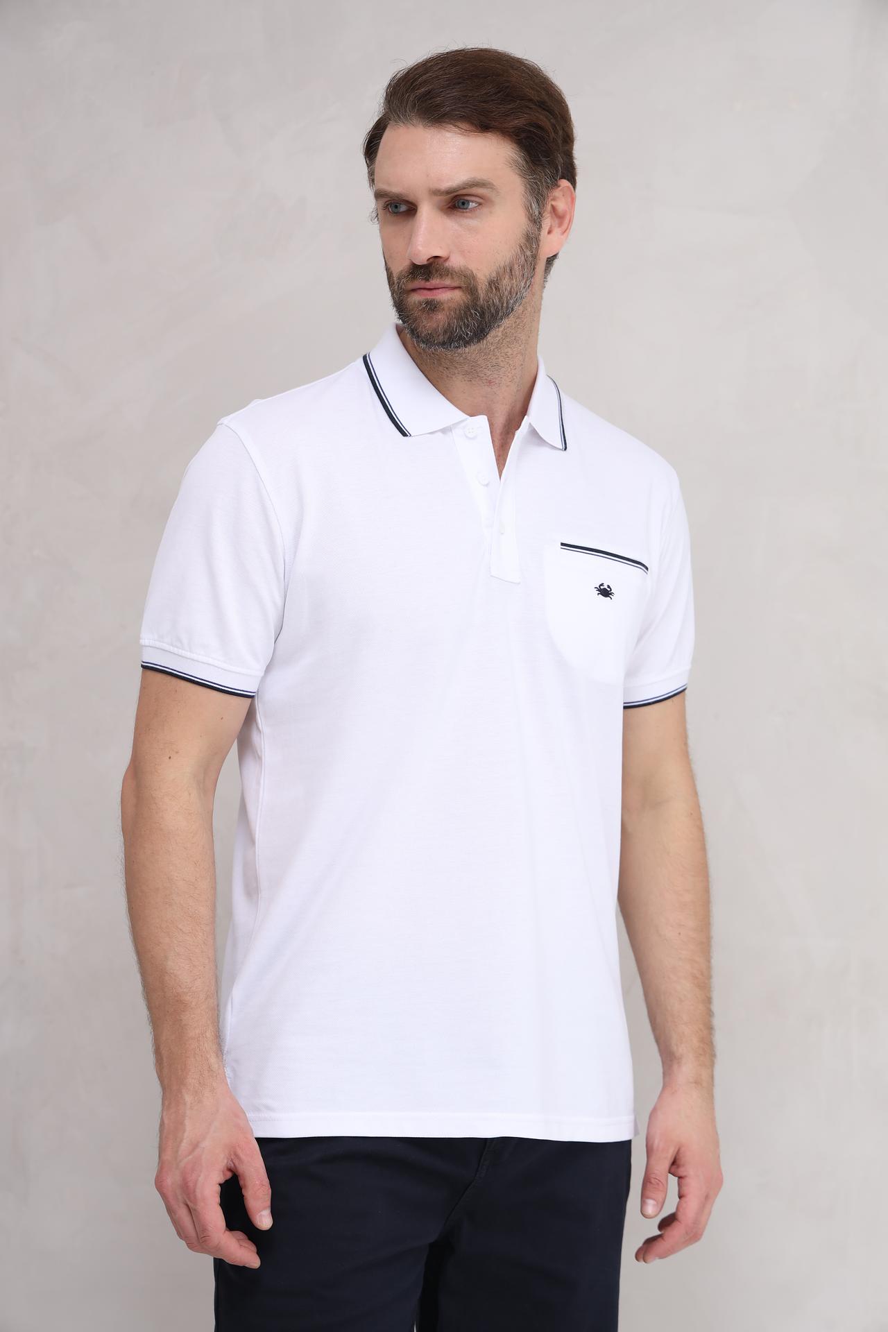 Поло Granchio мужское белое с контрастной отделкой и вышивкой краба