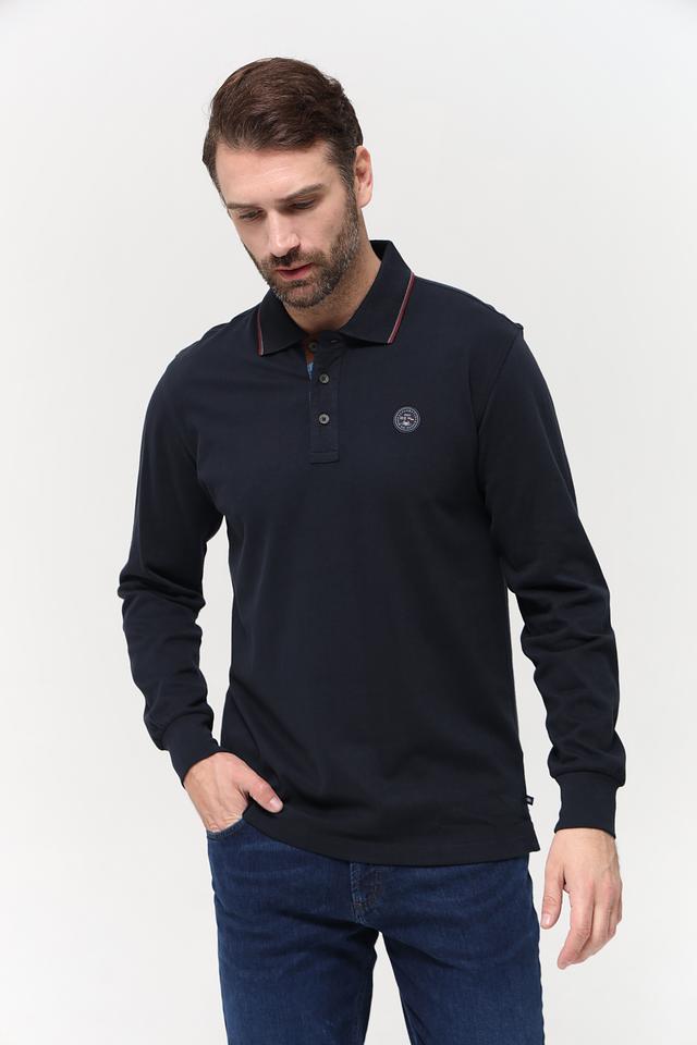 Мужское поло от бренда Granchio выполнено в тёмно-синем цвете. Изделие имеет длинный рукав, что делает его актуальным для прохладной погоды.