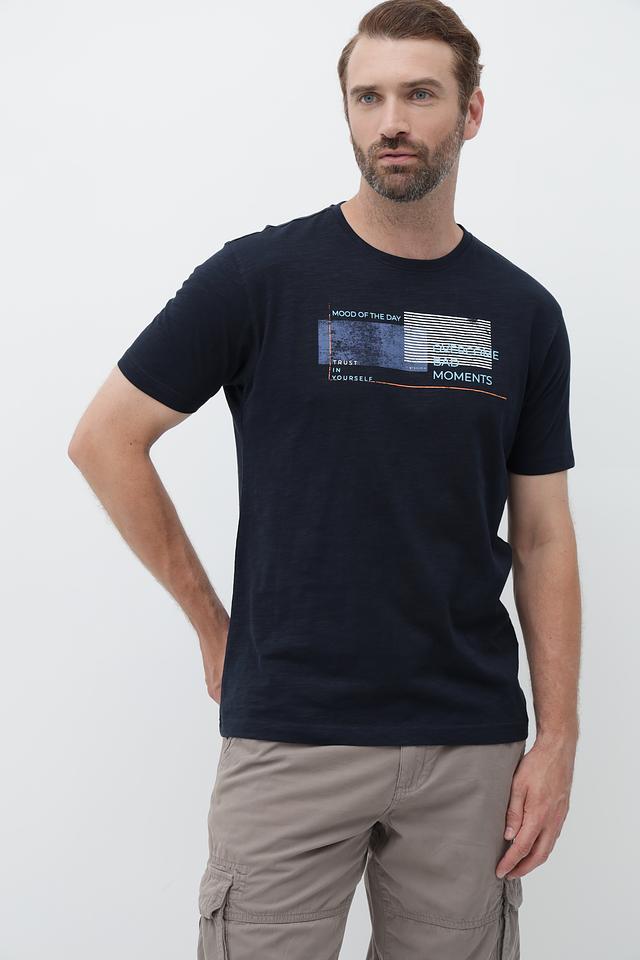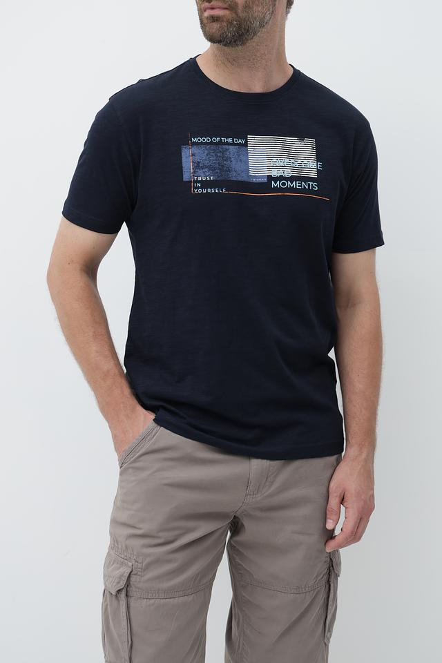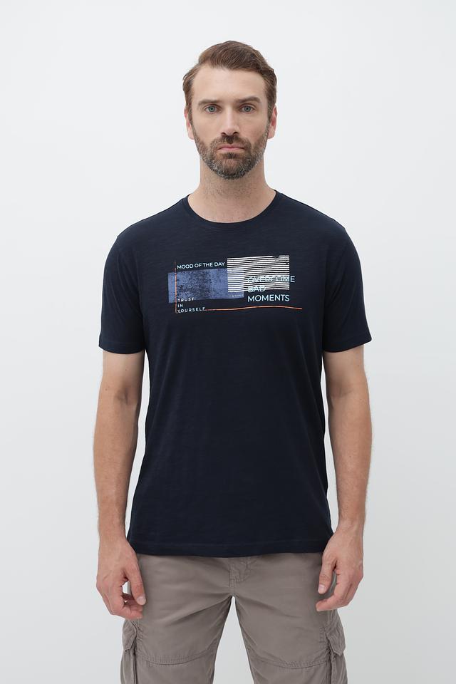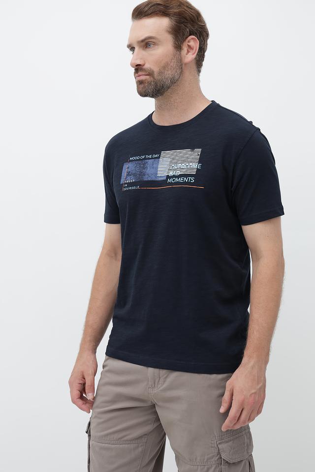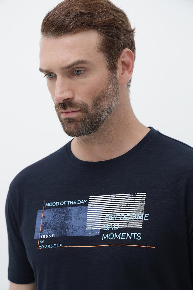 Мужская футболка Granchio темно-синего цвета с оригинальным графическим принтом. Изготовлена из 100% хлопка, обеспечивающего комфорт и воздухопроницаемость. Стильный и удобный вариант для повседневной носки. Состав: хлопок 100%