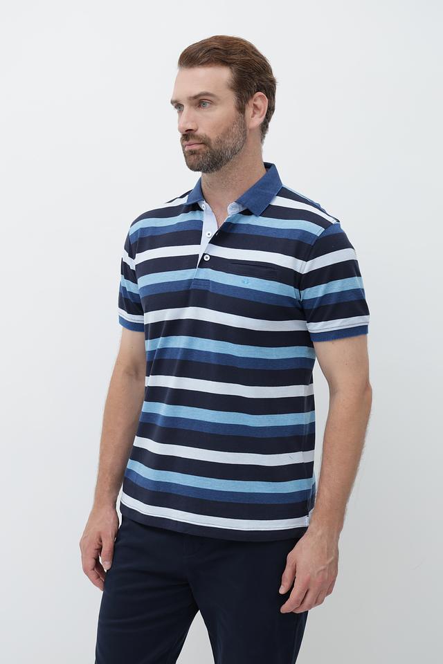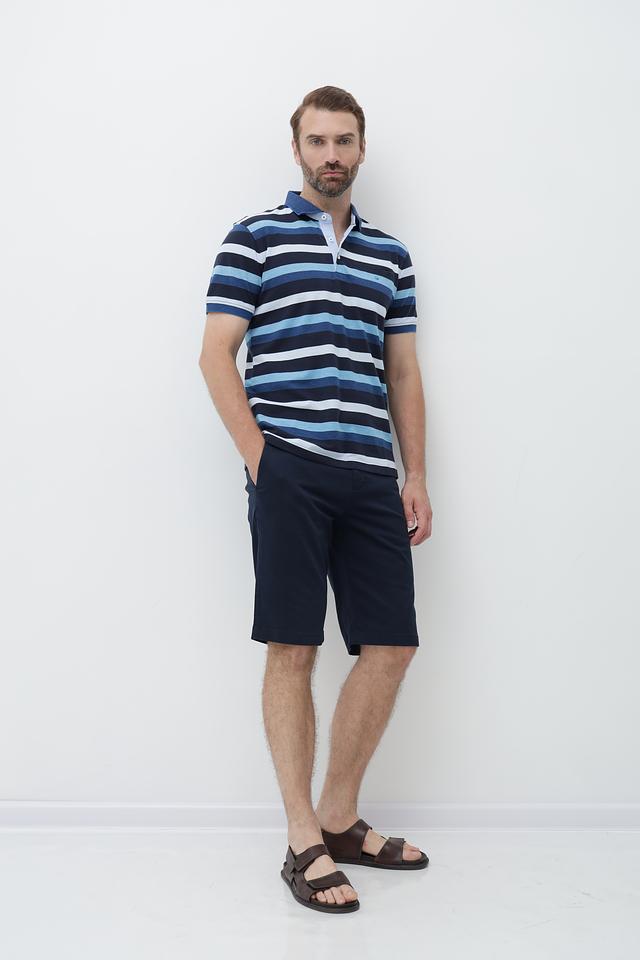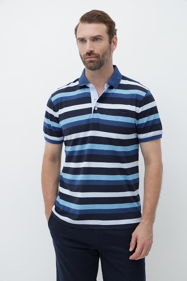 Мужское поло Granchio синего цвета с классическим дизайном в полоску. Изготовлено из сочетания хлопка и полиэстера, обеспечивающего комфорт и практичность. Отличный выбор для повседневного гардероба. Состав: хлопок 60%, полиэстер 40%
