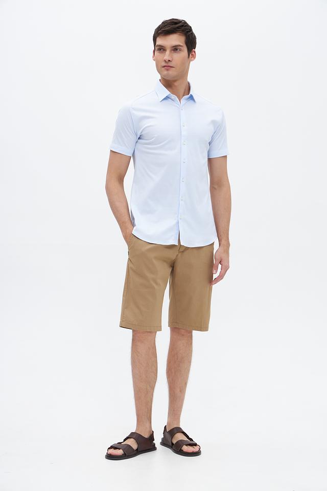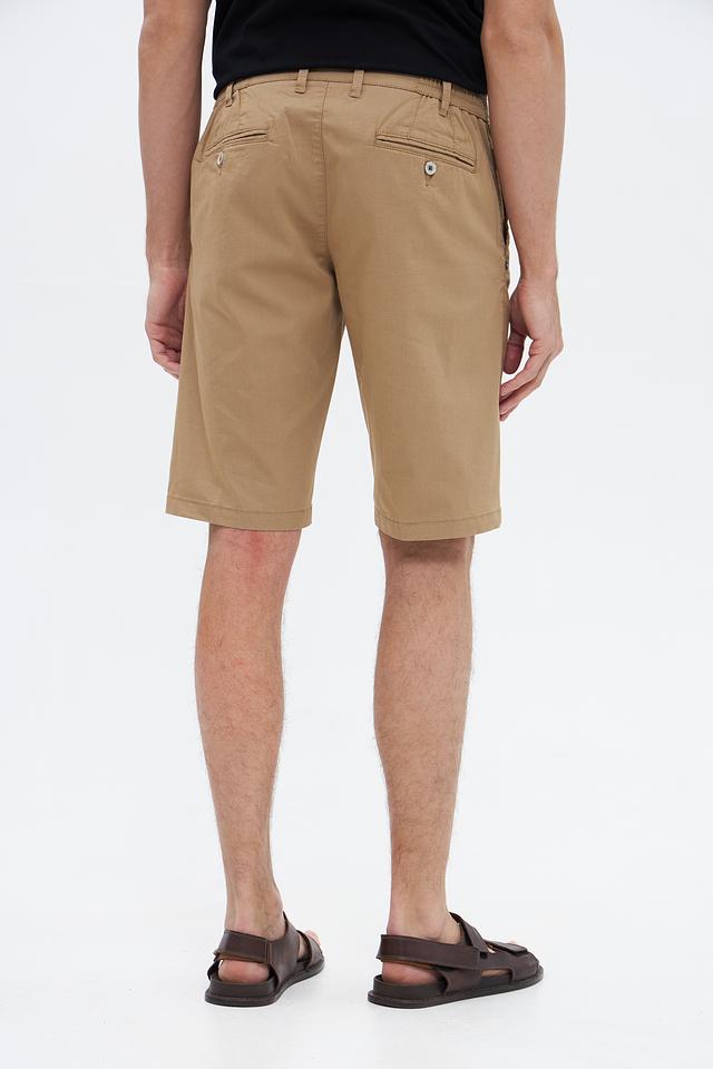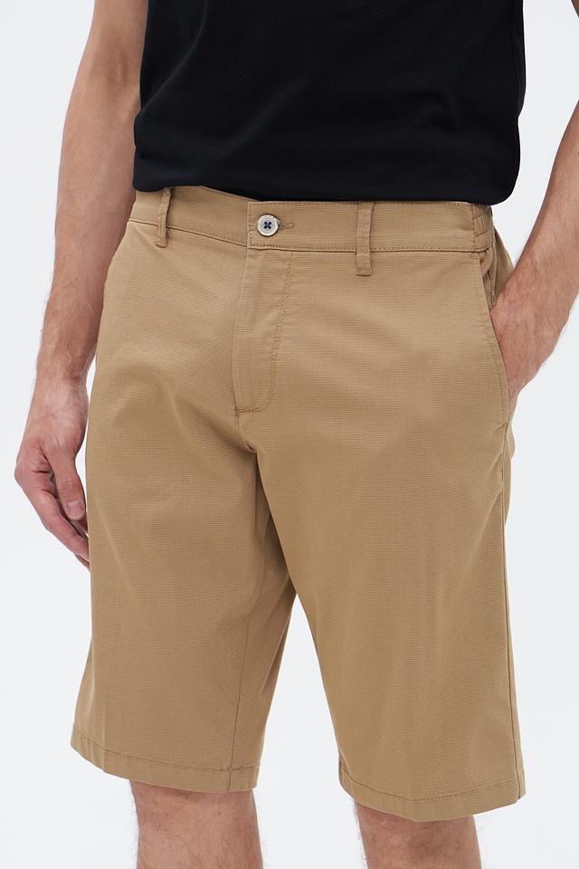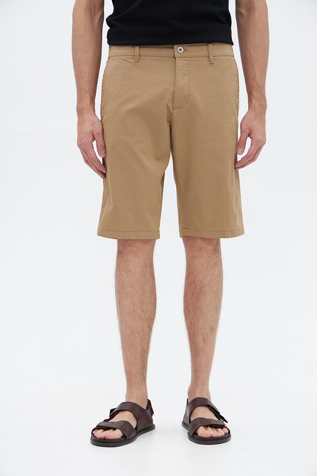 Шорты оснащены стандартным поясом с петлями для ремня и боковыми карманами. Застежка – молния и пуговица. Ткань имеет легкую текстуру. Данная модель станет отличным выбором для повседневной носки в теплую погоду.