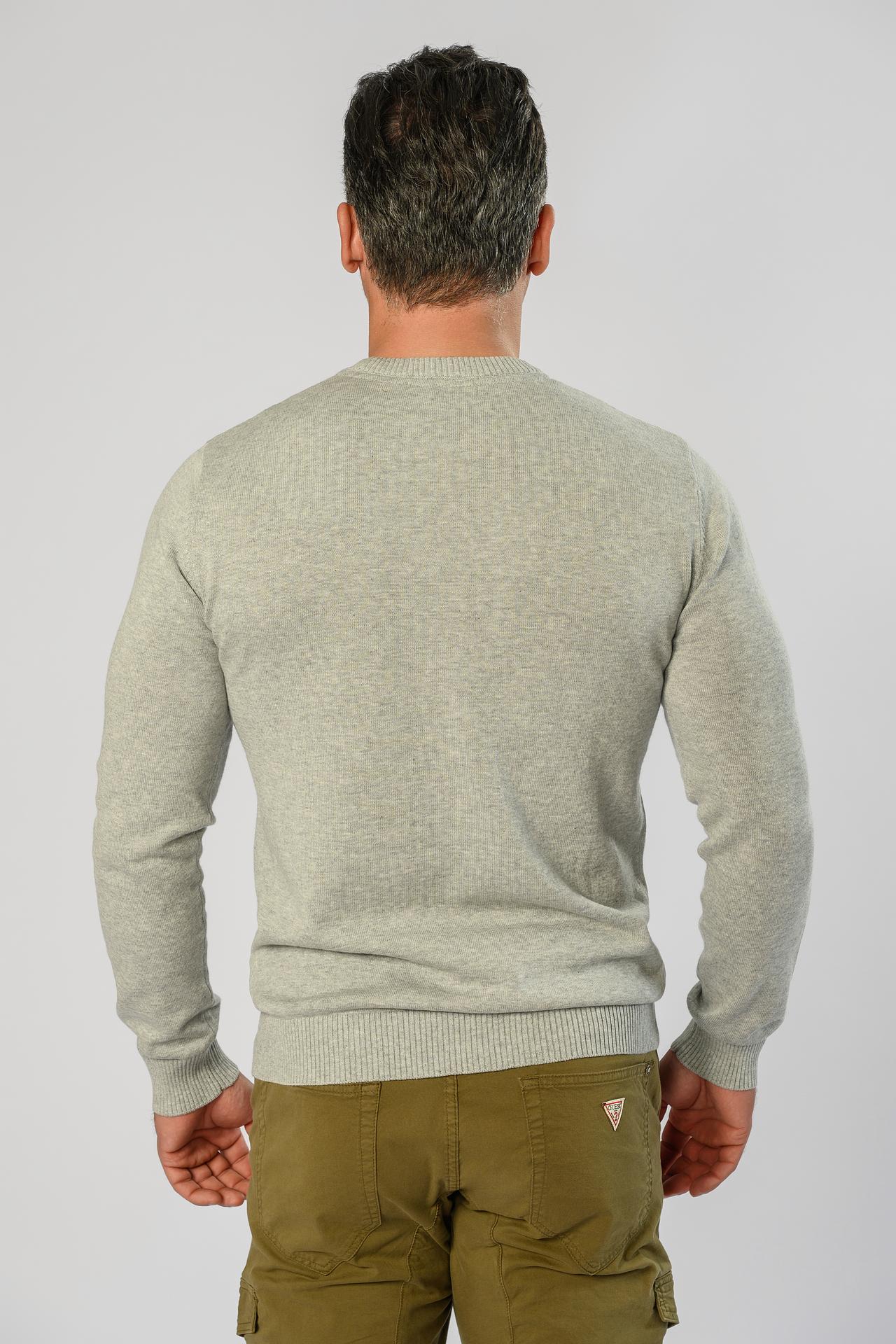 - Дизайн: Классический крой с круглым вырезом и длинными рукавами. Однотонный серый цвет джемпера дополнен эффектным принтом Guess.