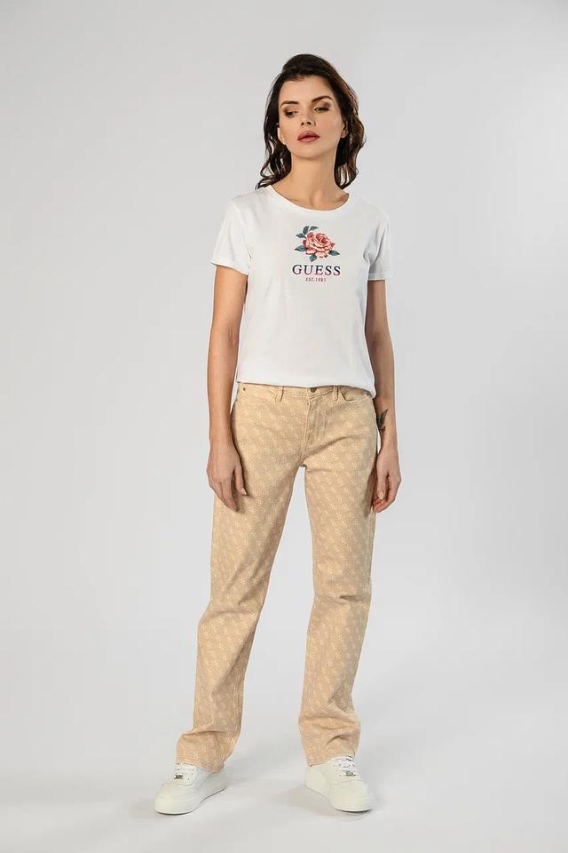 Эта стильная футболка от Guess станет отличным дополнением к вашему гардеробу. Футболка выполнена в белом цвете и украшена ярким цветочным принтом с изображением розы и логотипом бренда.