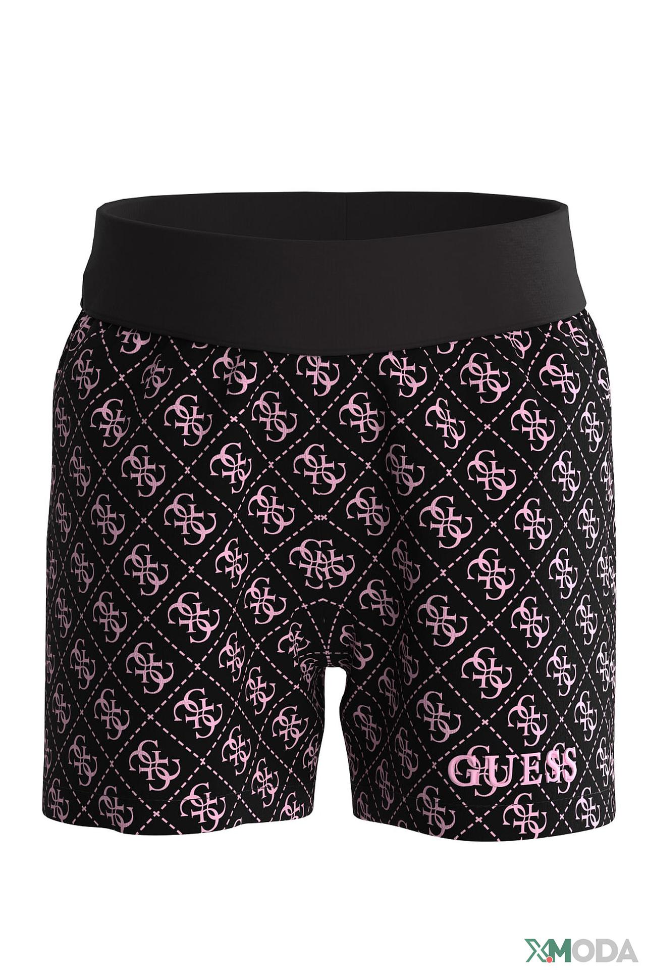 - Дизайн: Оригинальный принт с логотипами Guess на черном фоне и эластичный пояс с логотипом бренда.