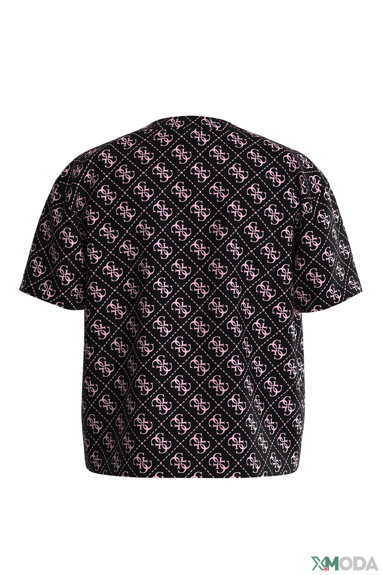 - Оригинальный дизайн: Яркий принт с узнаваемым логотипом Guess в виде треугольника и узором "G" по всей поверхности делает эту футболку заметной и модной. Контрастное сочетание черного фона с розовым и серебристым принтом выглядит очень эффектно.