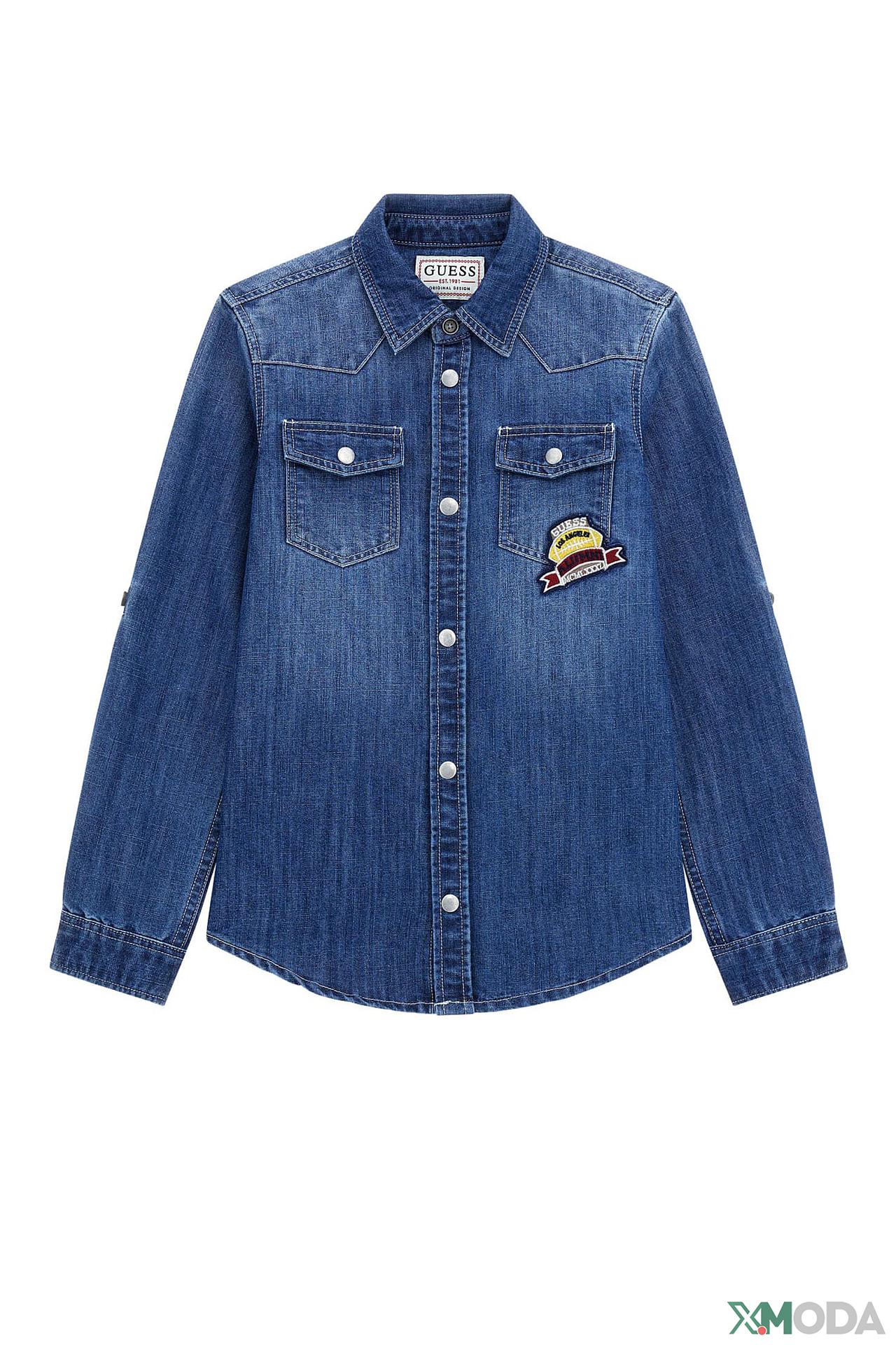 Рубашка джинсовая Guess синяя с нашивкой и принтом для мальчиков