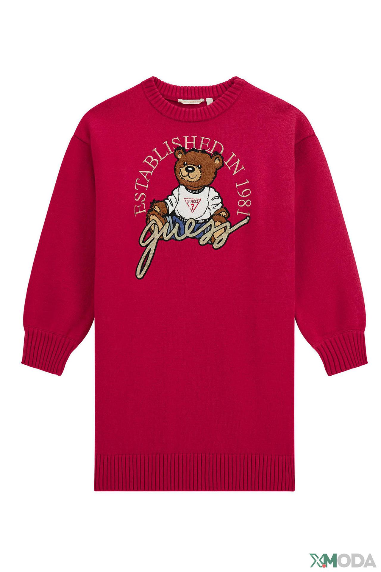 Платье-туника Guess красное с вышивкой мишки для девочки