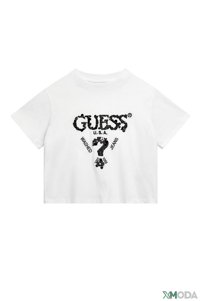 Белая футболка Guess для девочек с эффектным логотипом бренда. Изготовлена из 100% хлопка, обеспечивающего комфорт и воздухопроницаемость. Стильный и практичный выбор для повседневной носки. Состав: хлопок 100%