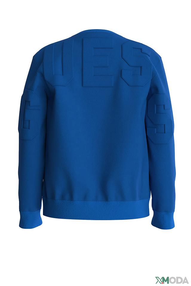 Джемпер имеет классический крой с круглым вырезом горловины и длинными рукавами. На груди расположен небольшой логотип бренда, а на спине – крупная надпись GUESS, выполненная рельефным способом, что придает модели особый стиль и узнаваемость.