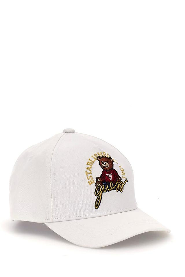 Белая бейсболка Guess для мальчиков с вышивкой в виде милого медвежонка. Аксессуар выполнен из 100% хлопка, обеспечивая комфорт и воздухопроницаемость. Стильный дизайн и качественные материалы делают эту бейсболку отличным дополнением к детскому гардеробу. Состав: хлопок 100%