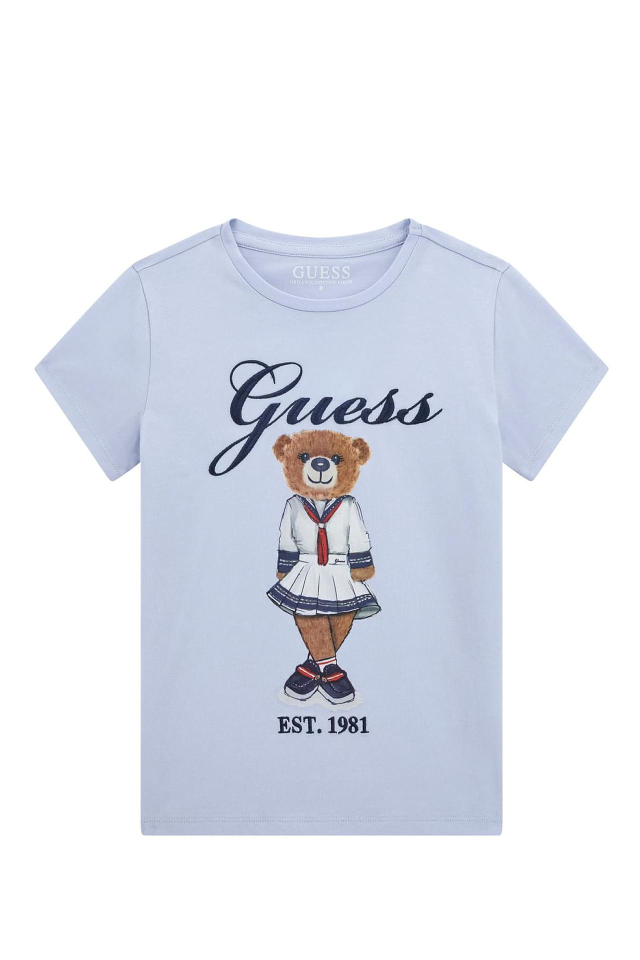 Светло-голубая футболка Guess для девочек с очаровательным принтом медвежонка — это отличный выбор для создания милого и стильного образа. Изделие выполнено из мягкого и приятного на ощупь материала, который идеально подходит для нежной детской кожи. Футболка станет прекрасным дополнением к гардеробу юной модницы, обеспечивая комфорт и свободу движений в течение всего дня.