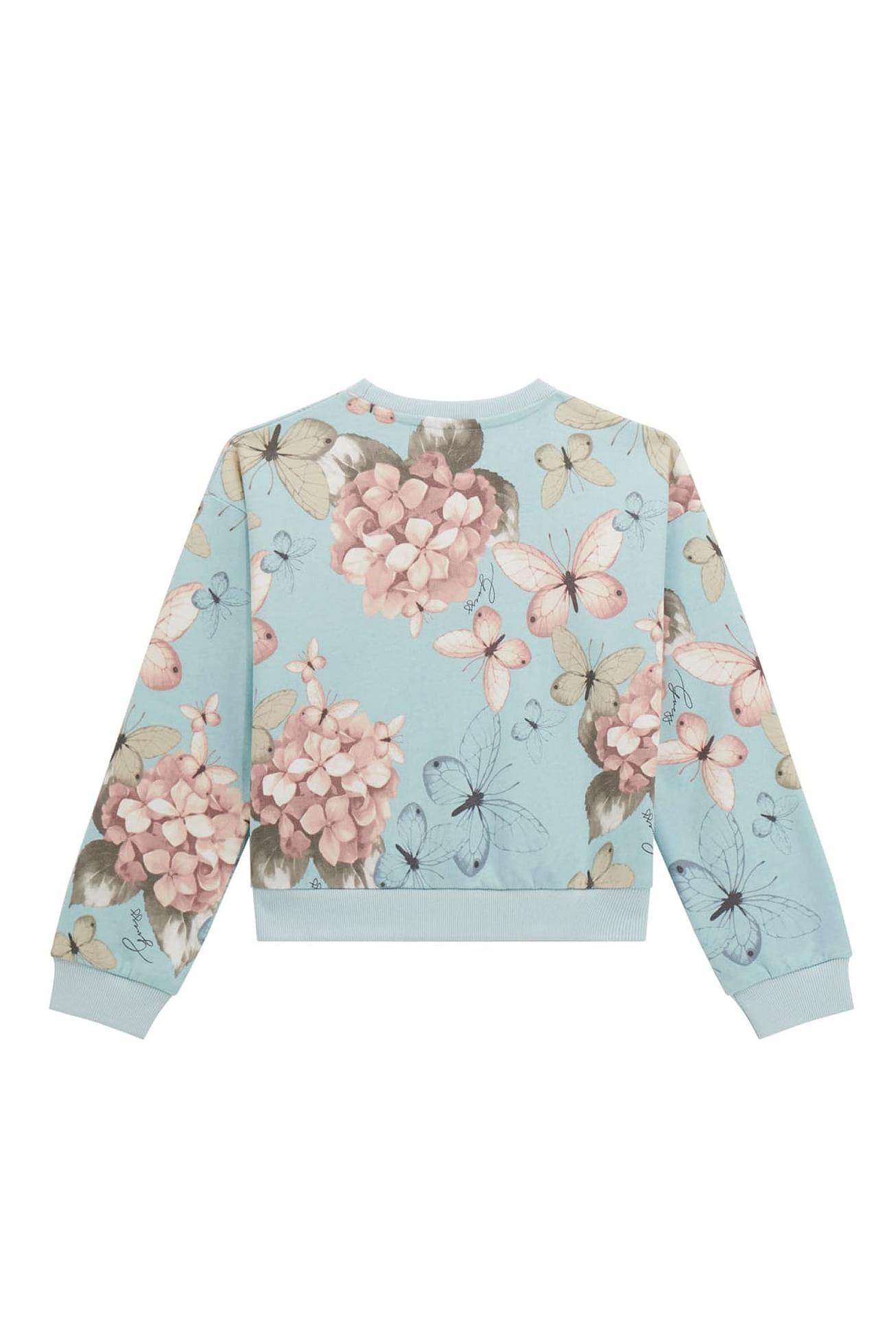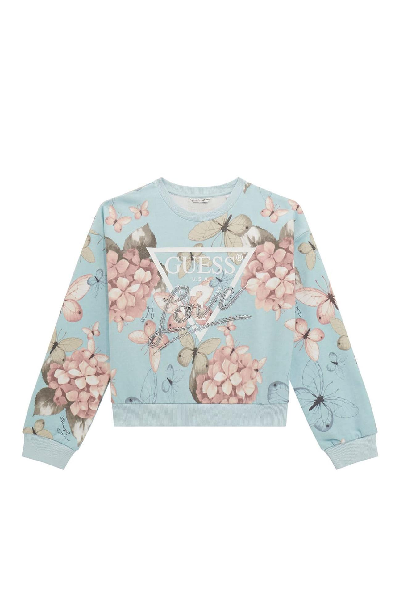 Детский джемпер Guess голубой с цветочным принтом и стразами