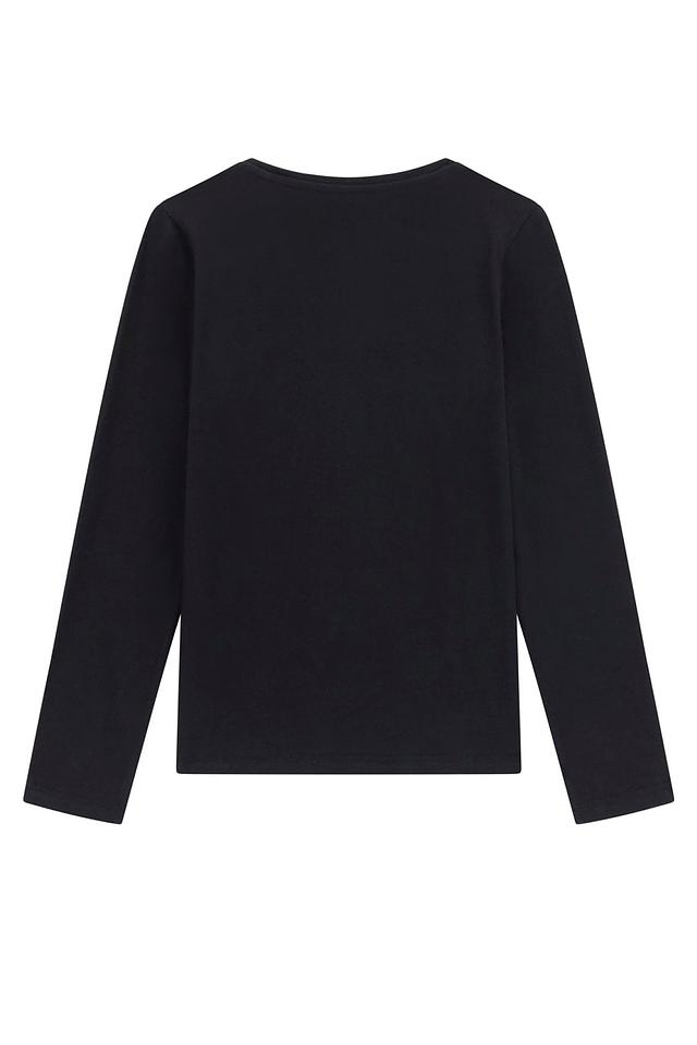 Чёрная футболка Guess для девочек с ярким принтом и длинными рукавами. Изготовлена из мягкого хлопка с добавлением эластана для комфорта и свободы движений. Состав: хлопок 95%, эластан 5%