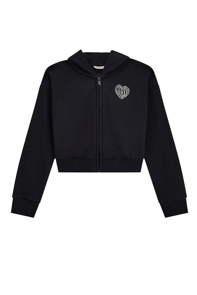 Чёрная толстовка на молнии от Guess для девочек. Изготовлена из 100% хлопка, обеспечивающего комфорт и мягкость. Украшена фирменным логотипом бренда. Состав: хлопок 100%
