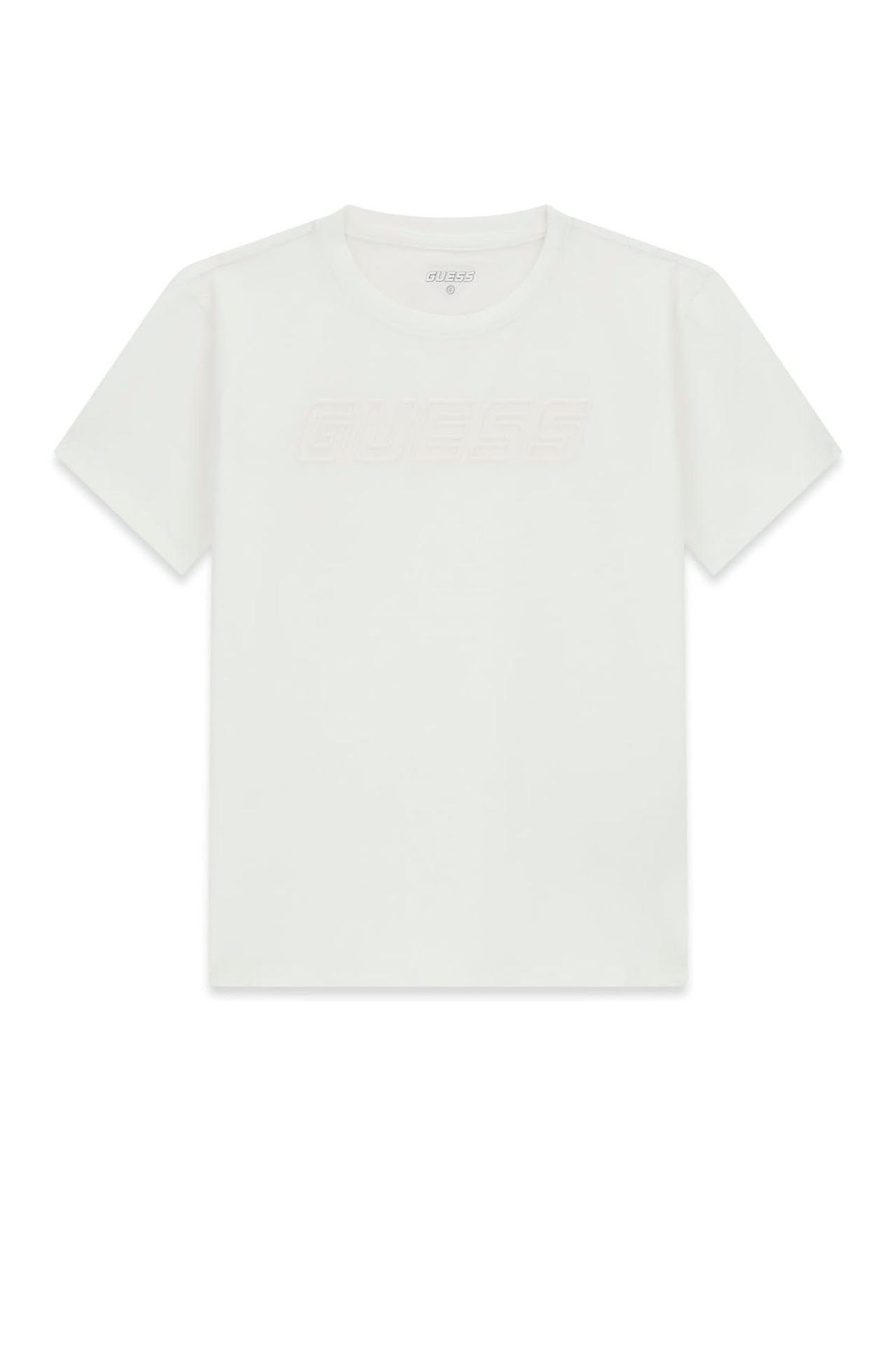- Стильный дизайн: Лаконичный белый цвет и тисненый логотип Guess делают эту футболку универсальной и легко сочетаемой с различными элементами детского гардероба. Она идеально подойдет для создания как повседневных, так и более нарядных образов.