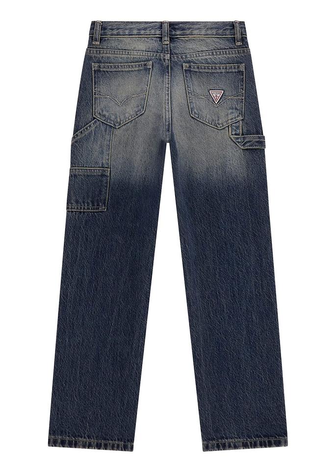Джинсовые брюки Guess для мальчиков, синего цвета, с карманами и эффектом потертости. Модель выполнена из 100% хлопка, обеспечивая комфорт и удобство в носке. Состав: хлопок 100%
